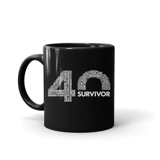 Survivor 20 Years 40 Seasons All Over Black and Yellow Tribal Pattern 11 oz Black Color Changing Mug