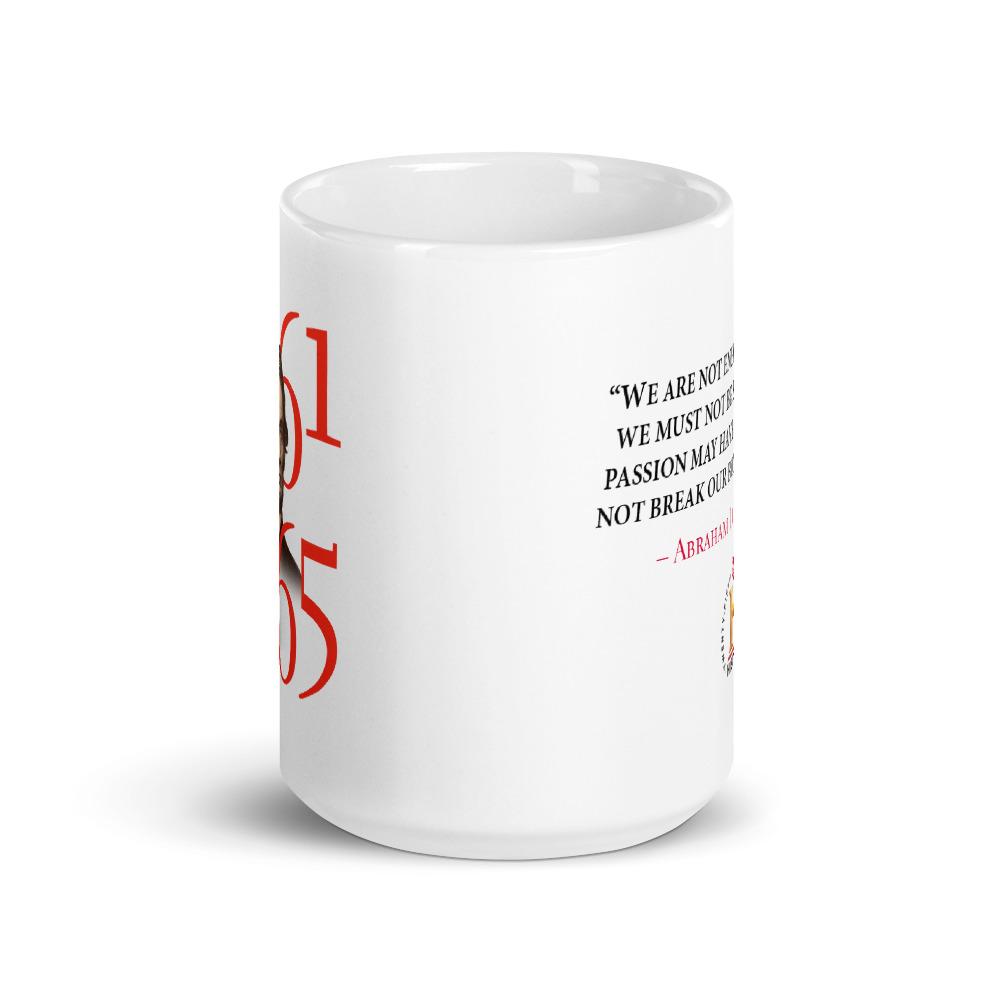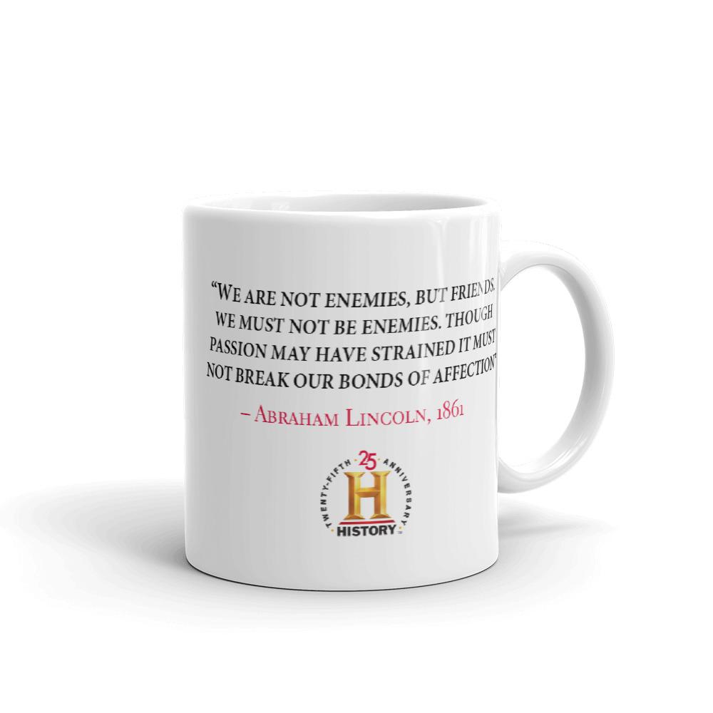 This Abraham Lincoln Not Enemies But Friends White Mug lets you enjoy your morning coffee or evening tea with a dose of history. Whether you keep this mug in your kitchen or proudly display it on your desk, this white mug reminds us of the importance of upholding friendships with each sip.