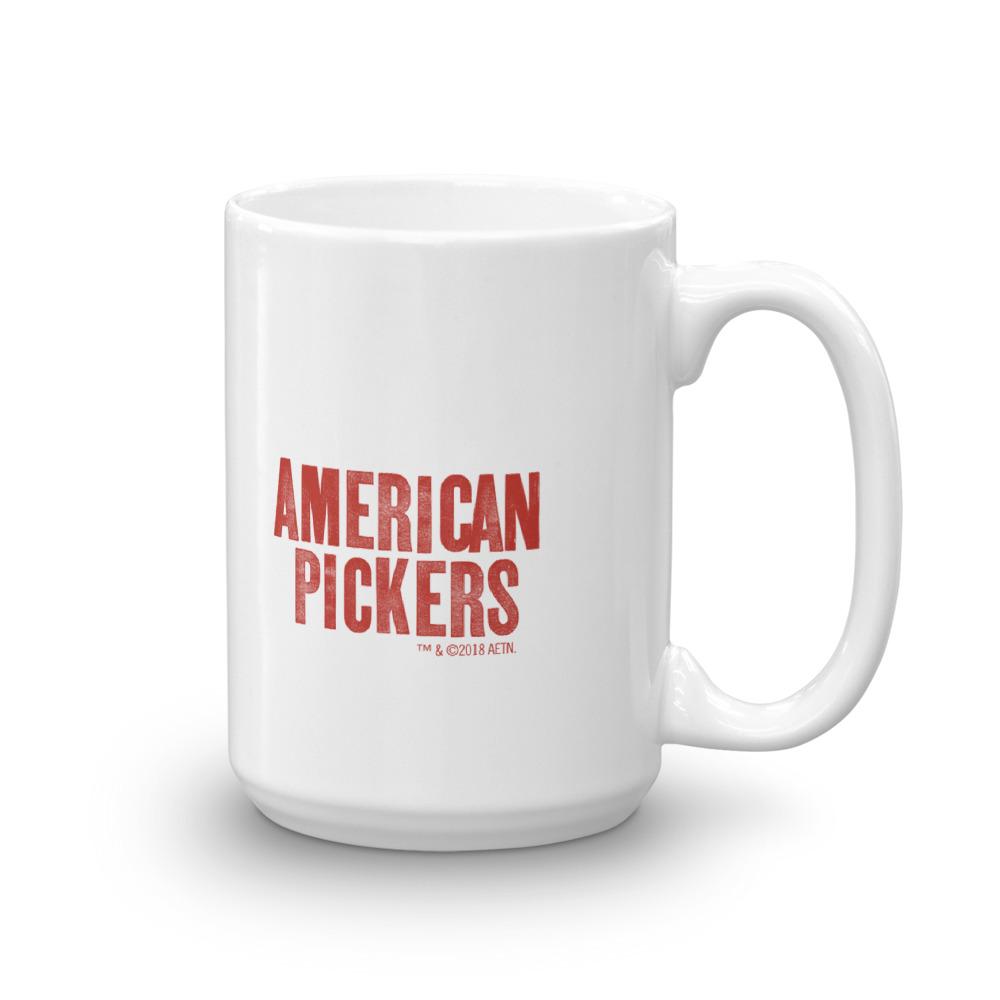 Mike and Frank look for rusty gold in some of the strangest places, but that’s why we love it! Show your love for American Pickers all while enjoying your favorite beverage with the American Pickers Looking for Rusty Gold Circular White Mug. Available in 11 oz and 15 oz.