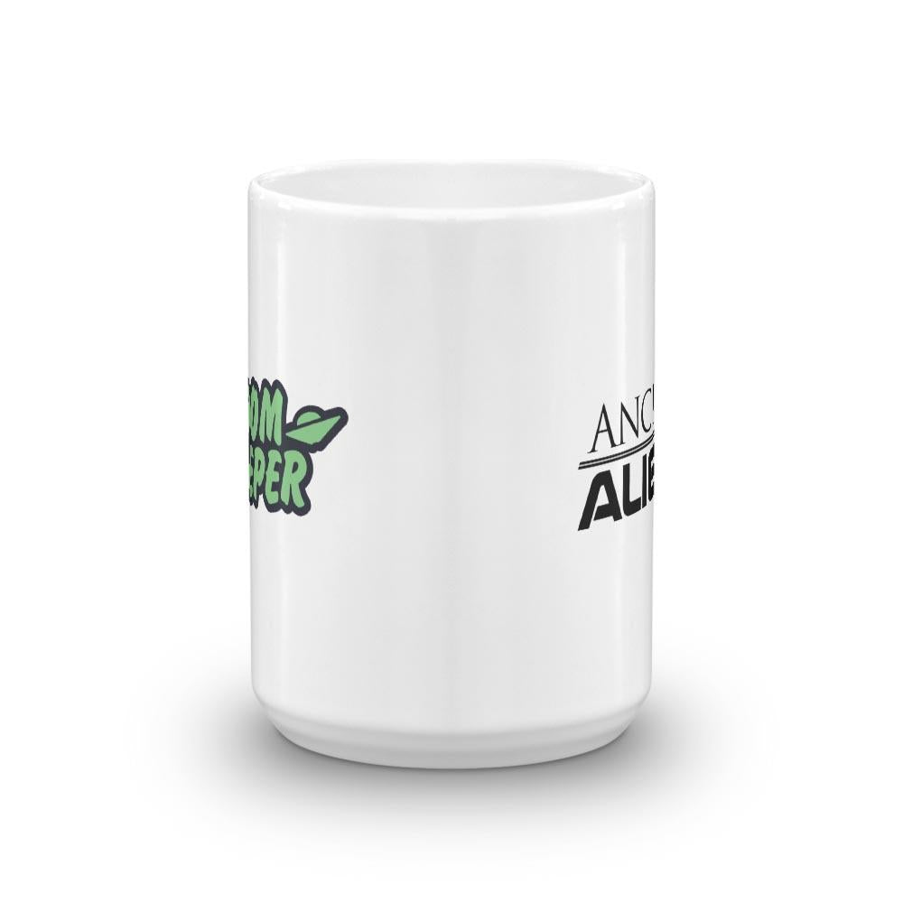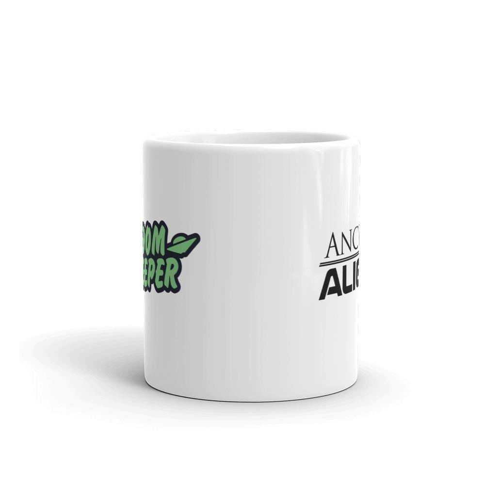 Drink your morning cup of coffee in this Ancient Aliens white mug. It features the Wisdom Keeper design on the front and the offical Ancient Aliens logo on the back and is perfect for any fan ready to start their day with some wisdom.