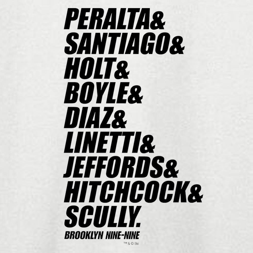 Feel like you’re part of the Brooklyn Nine-Nine crew with this ampersand women’s flowy tank top. This comfortable tank features Peralta Santiago Holt Boyle Diaz Linetti Jeffords Hitchcock and Scully so basically all of your favorite characters from the show. This makes the perfect gift for any fan of Brooklyn Nine-Nine.