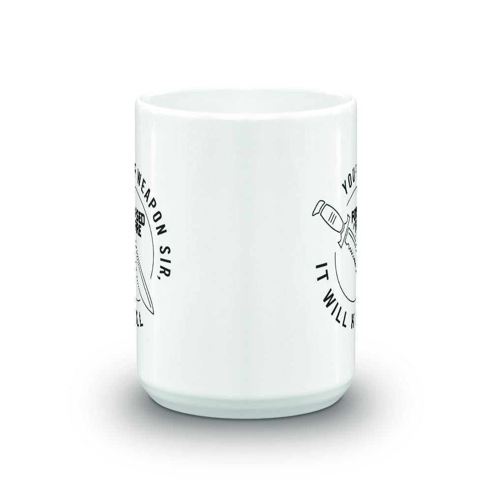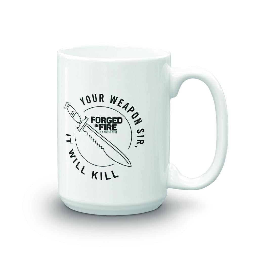 The Forged in Fire It Will Kill Knife White Mug is a great way to show your love for your favorite show. Perfect for an early morning or a late night, everyone will know you're a fan of Forged in Fire.