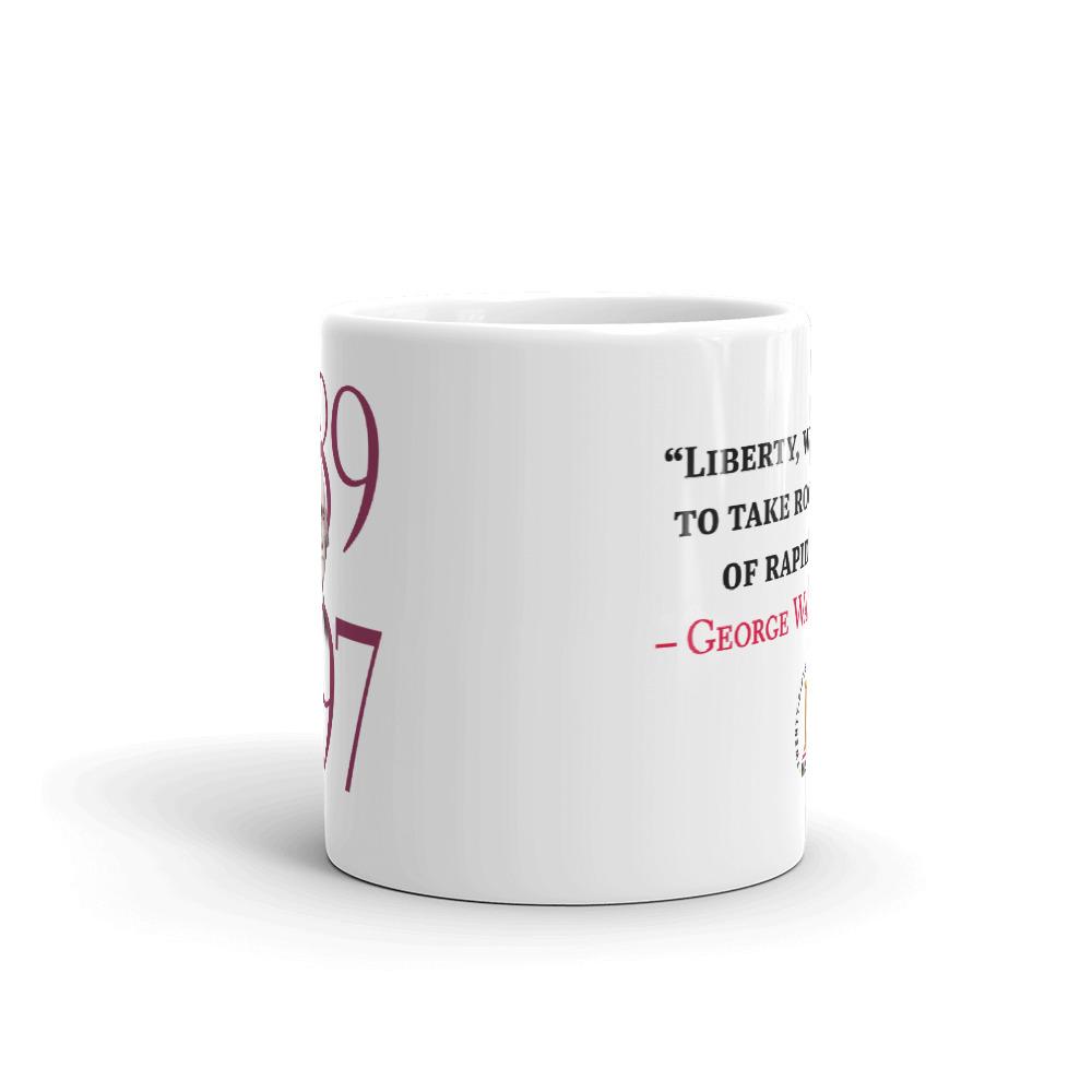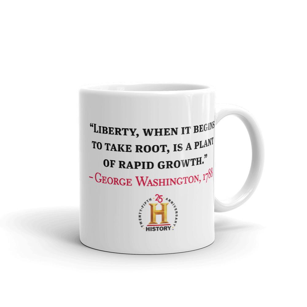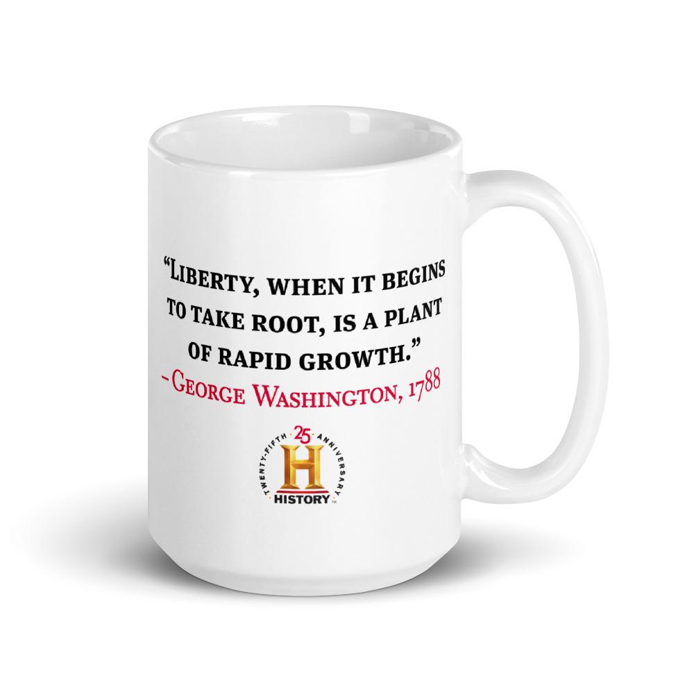 For coffee with a jolt of history, use this George Washington Liberty When It Begins To Take Root White Mug. Featuring George Washington's quote "Liberty, when it begins to take root, is a plant of rapid growth" on one side, and his portrait and dates of his presidency on the other. The quote is from a letter Washington wrote to James Madison in 1788.