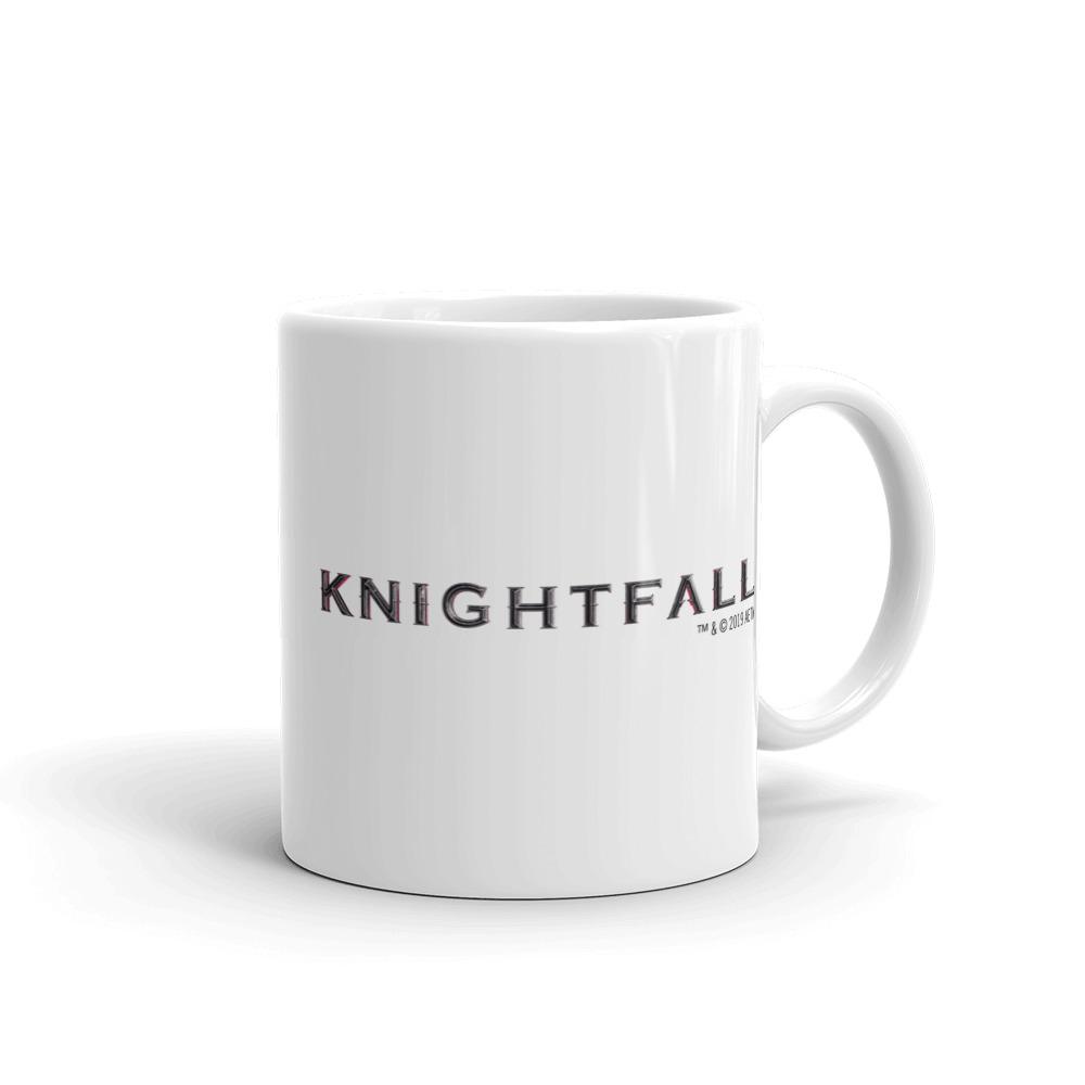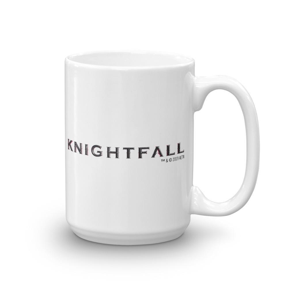Enjoy a fresh cup of coffee in your own grail with this Knightfall White Mug featuring the title across the front and back.