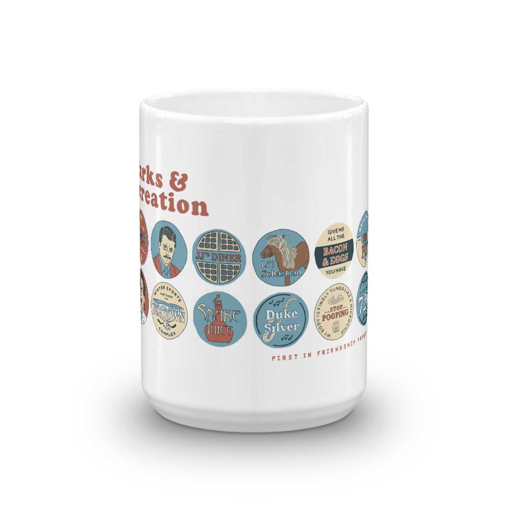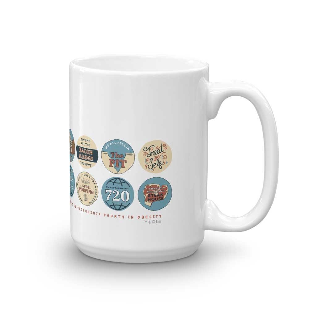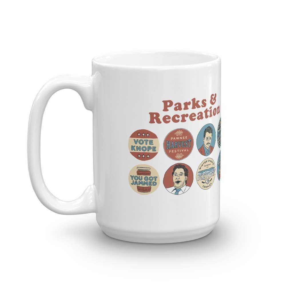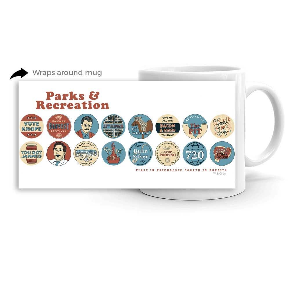 The Newest Version of the Parks and Recreation Quote Mash-up mug has arrived! This ceramic mug features some of the most memorable and hilarious quotes from the series. This design has all the quotes a die-hard fan could want including: You got Jammed Give me all the bacon and eggs you have Treat Yo Self and much more! With every sip from this mug you can take a trip back to Pawnee and relive your favorite moments from Parks and Recreation.