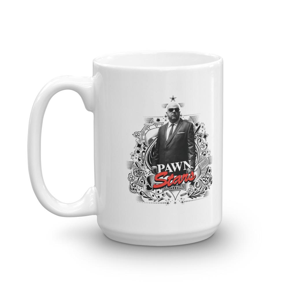 "Everyone should have to drink five cups of coffee a day, that should be the law," said by 'The Old Man' himself. Every fan of Pawn Stars was aware of Rick Harrison's iconic moments featuring his humerous coffee addiction. Fan for this legend and drink your morning brew out of the official Pawn Stars white mug. And remember, drink your five cups a day!