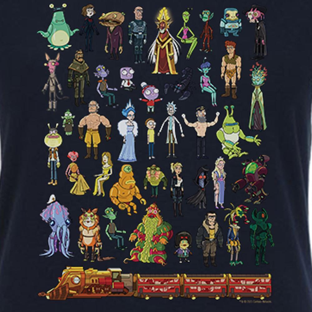 An iconic moment in Rick and Morty history, the Story Train design on this Rick and Morty Story Train Women's Short Sleeve T-Shirt will be recognized by any fan. Take all of the soulless enemies, lovers, and Goomby with you everywhere you go by adding this tee to your style.