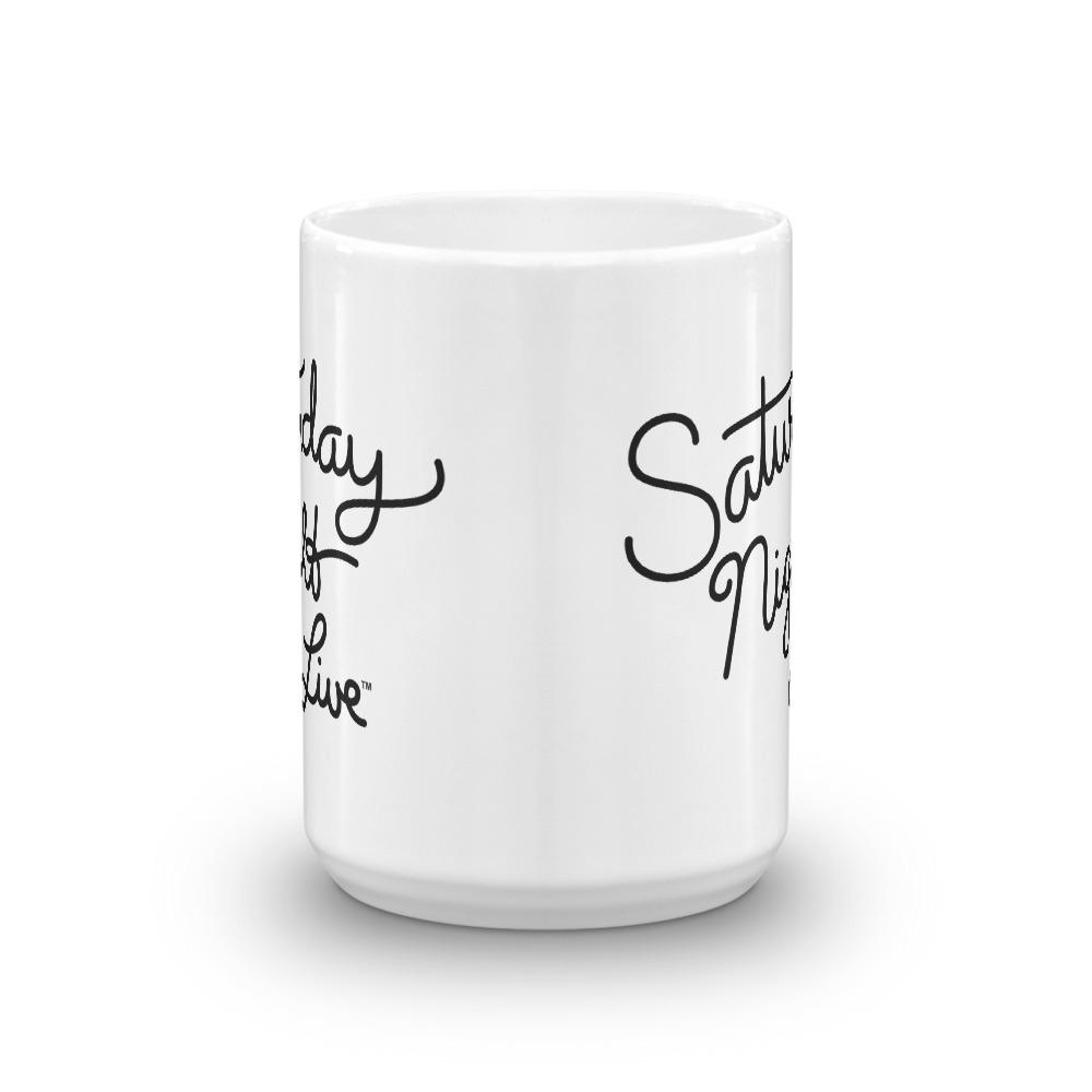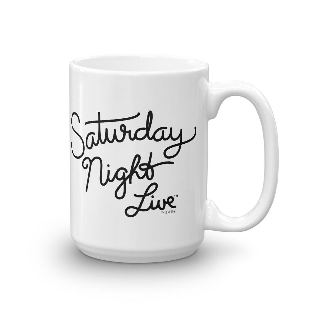Stay up late and watch your favorite comedy show  Saturday Night Live with this ceramic mug. Featuring the Saturday Night Logo on both sides   Saturday Night Live White Mug is available in 11 oz. and 15 oz.