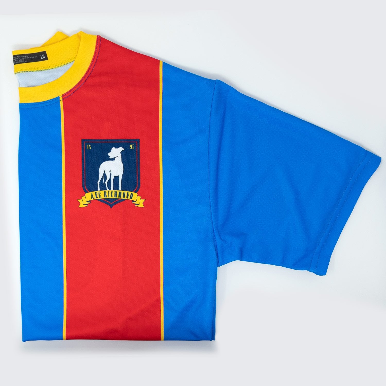 Cheer on the A.F.C. Richmond Greyhounds and their relentless coach Ted Lasso in the famed blue and red A.F.C. Richmond fan jersey. This A.F.C. Richmond jersey is lightweight, breathable, and designed to look just like the one's you see on field in Ted Lasso. You can even personalize with your name or favorite player!