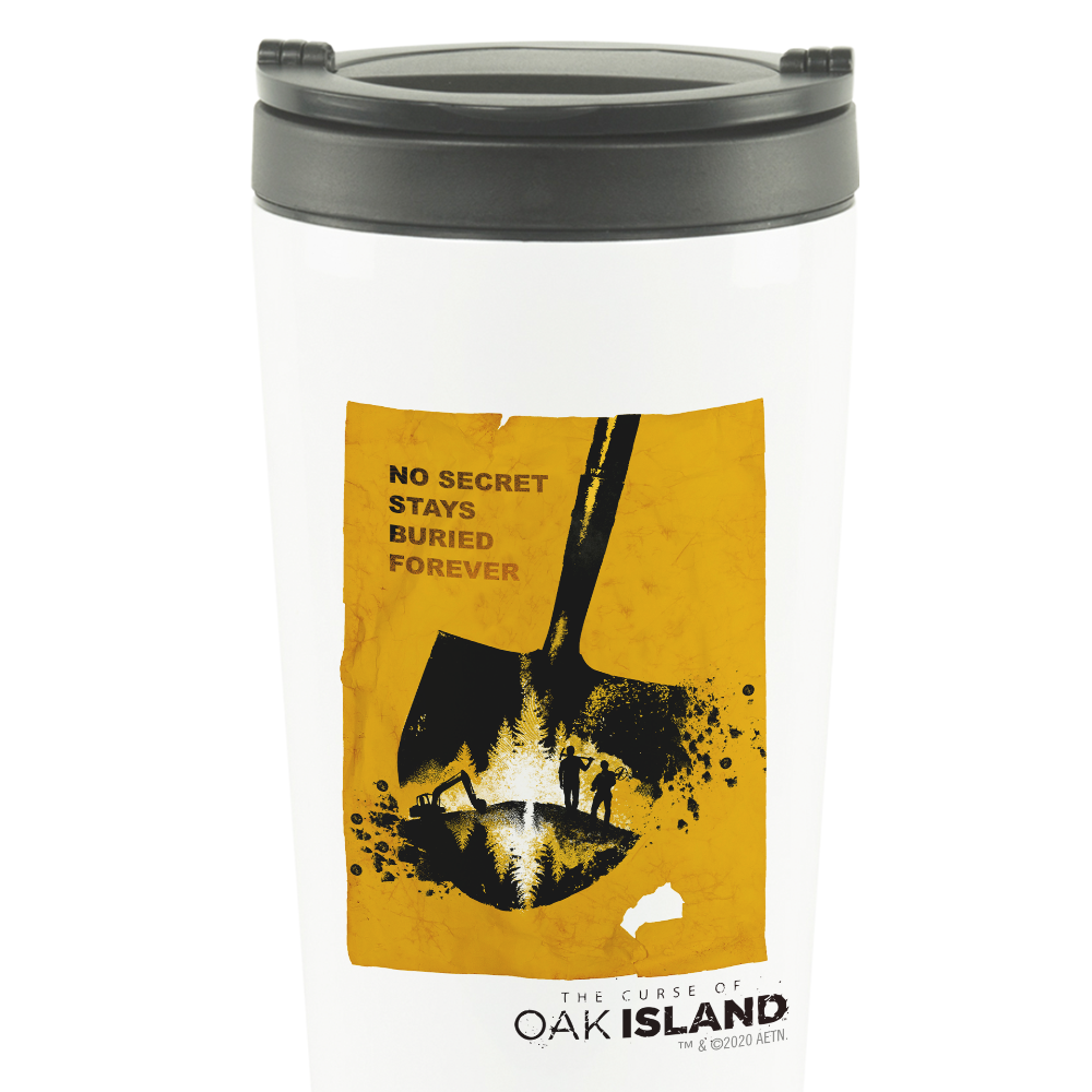 This durable The Curse of Oak Island No Secret Stays Buried Forever Travel Mug lets you take your favorite mystery with you everywhere you go. From digging in the Money Pit to commuting to the office, you can enjoy your favorite beverage in one secure place with this travel mug.
