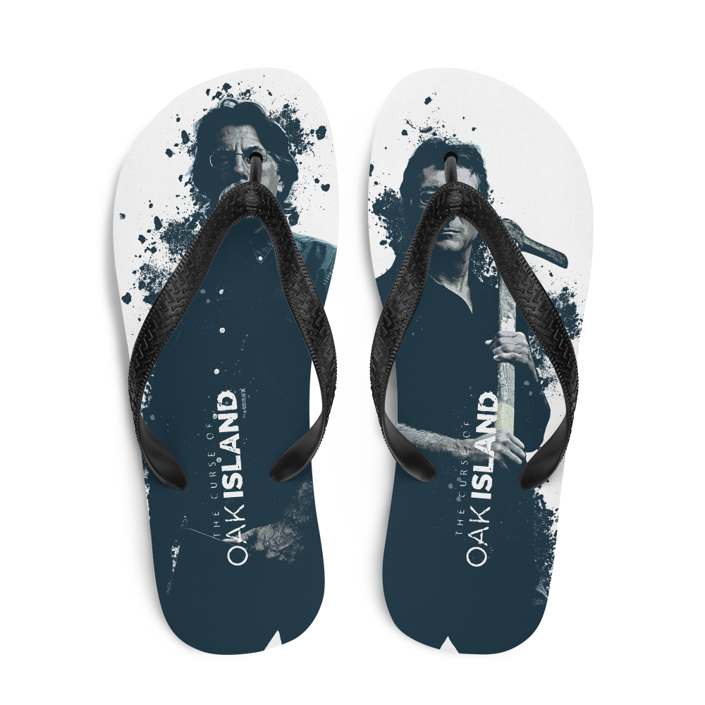 These comfy The Curse of Oak Island Rick and Marty Flip Flops make a stylish addition to your summer wardrobe. Featuring Rick Lagina on one flip flop and Marty Lagina on the other, these flip flops let you take your favorite treasure hunters with you everywhere you go.