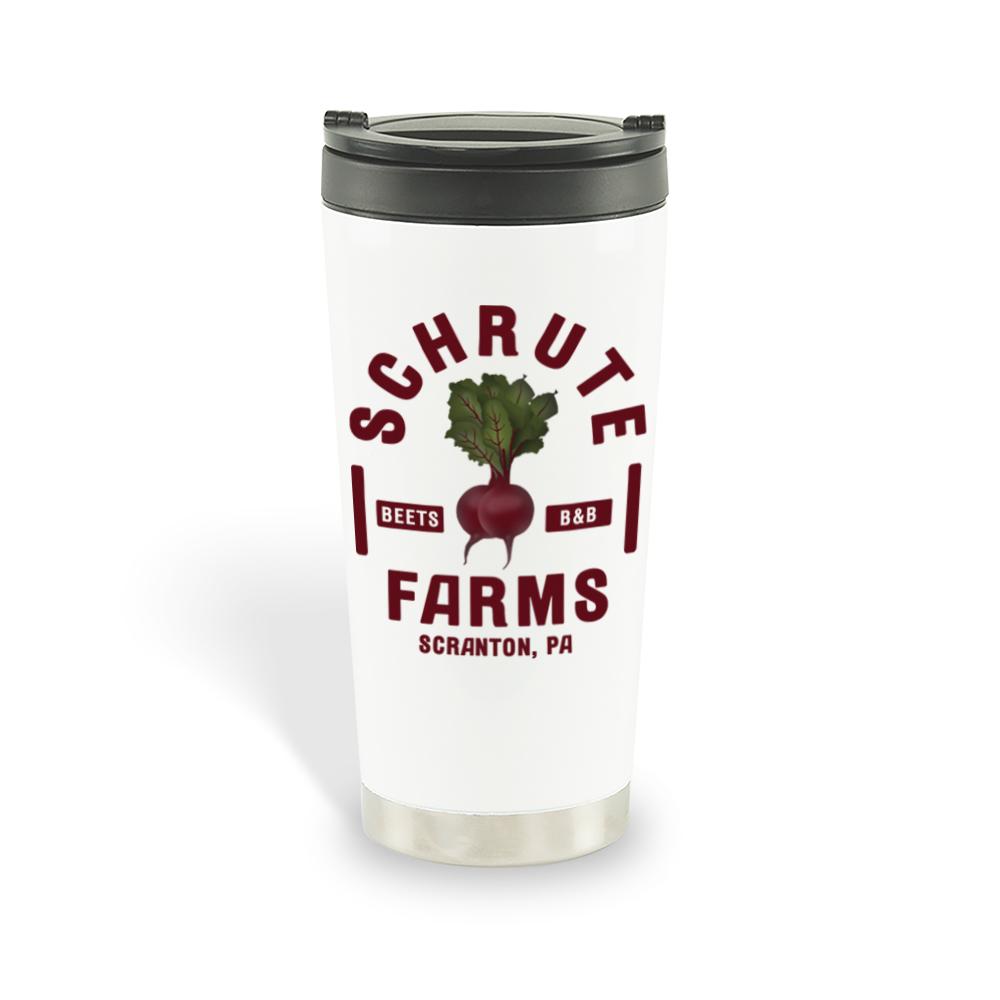 As a landlord paper salesman and farmer Dwight Schrute may be the busiest person at Dunder Mifflin Scranton. Fit your busy lifestyle and support Schrute Farms with The Office Schrute Farms Travel Mug. Perfect for your days on the go grab a travel mug today!