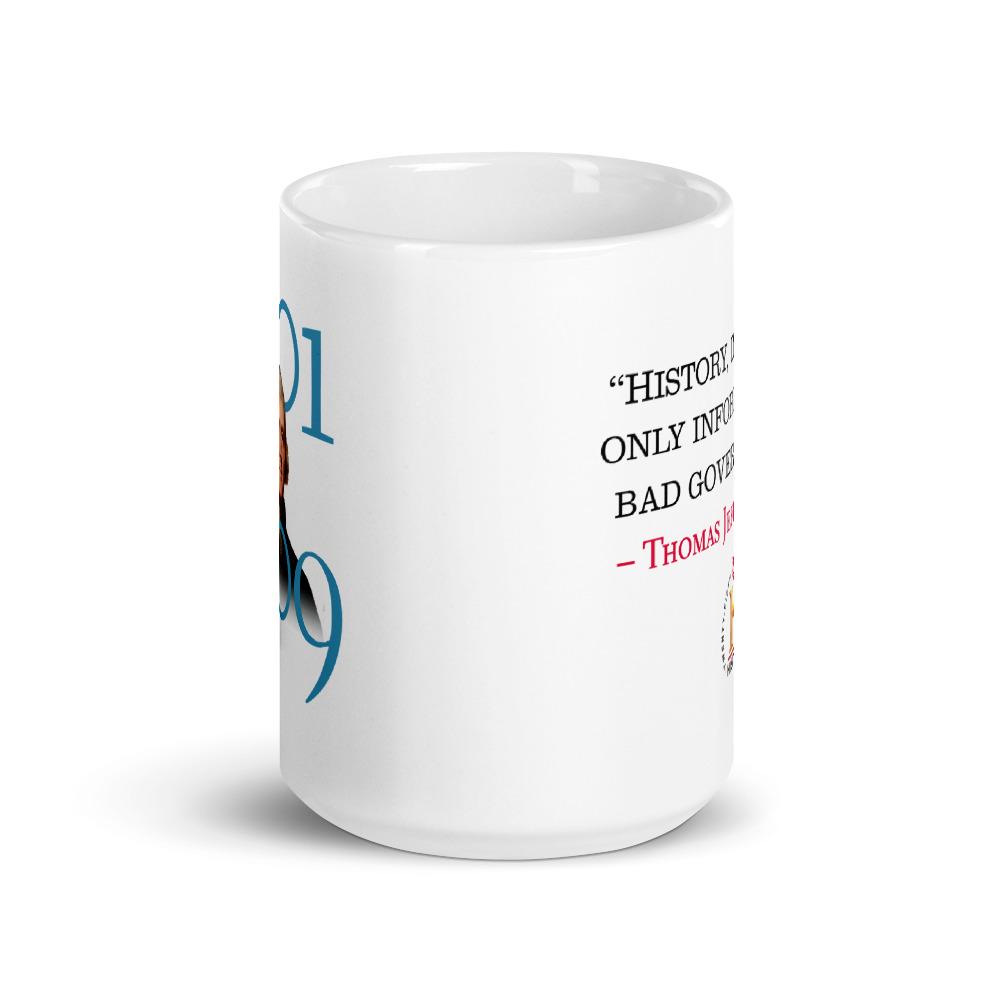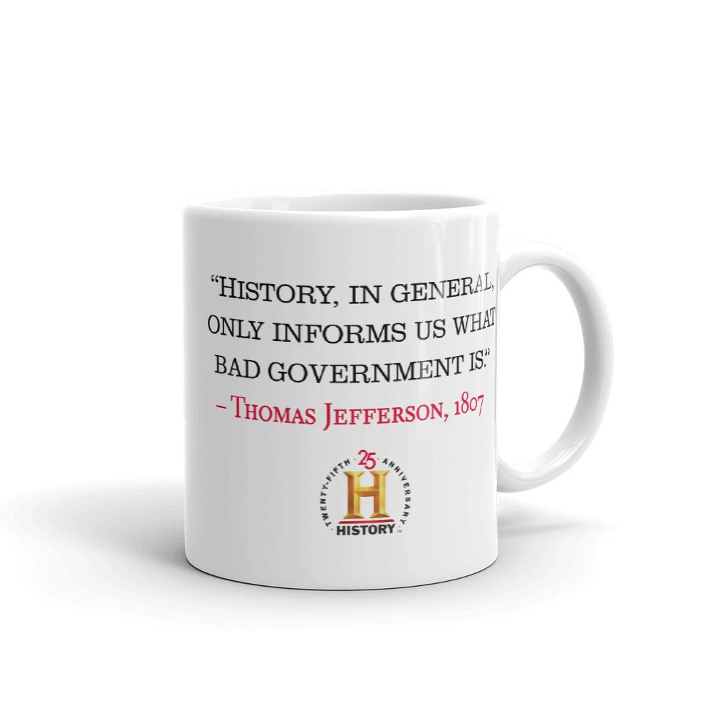 This Thomas Jefferson Bad Government White Mug lets features a picture of Jefferson and the dates of his presidency on one side, and his quote "History, in general, only informs us what bad government is" on the other. The mug makes a great birthday, holiday, or graduation gift for the biggest history buff in your life.