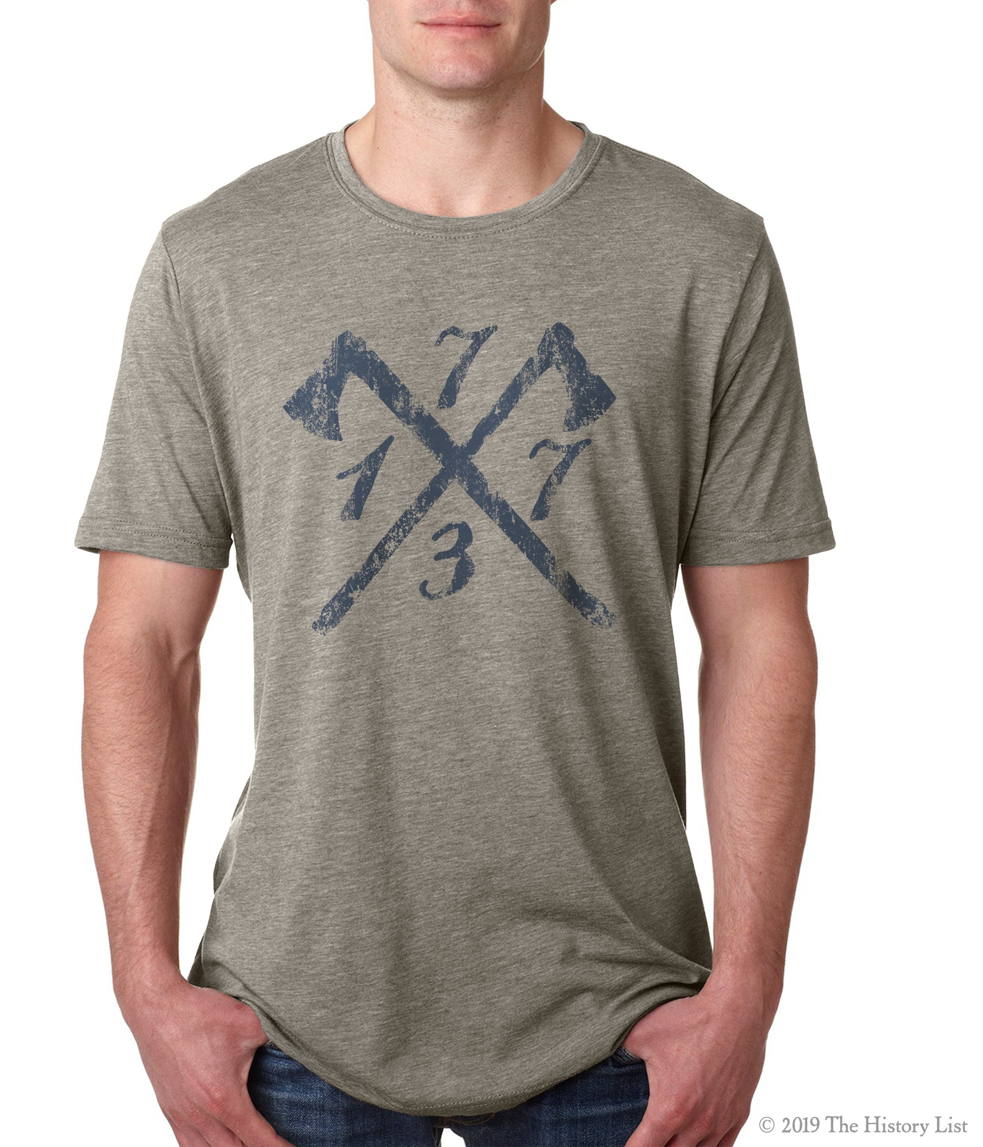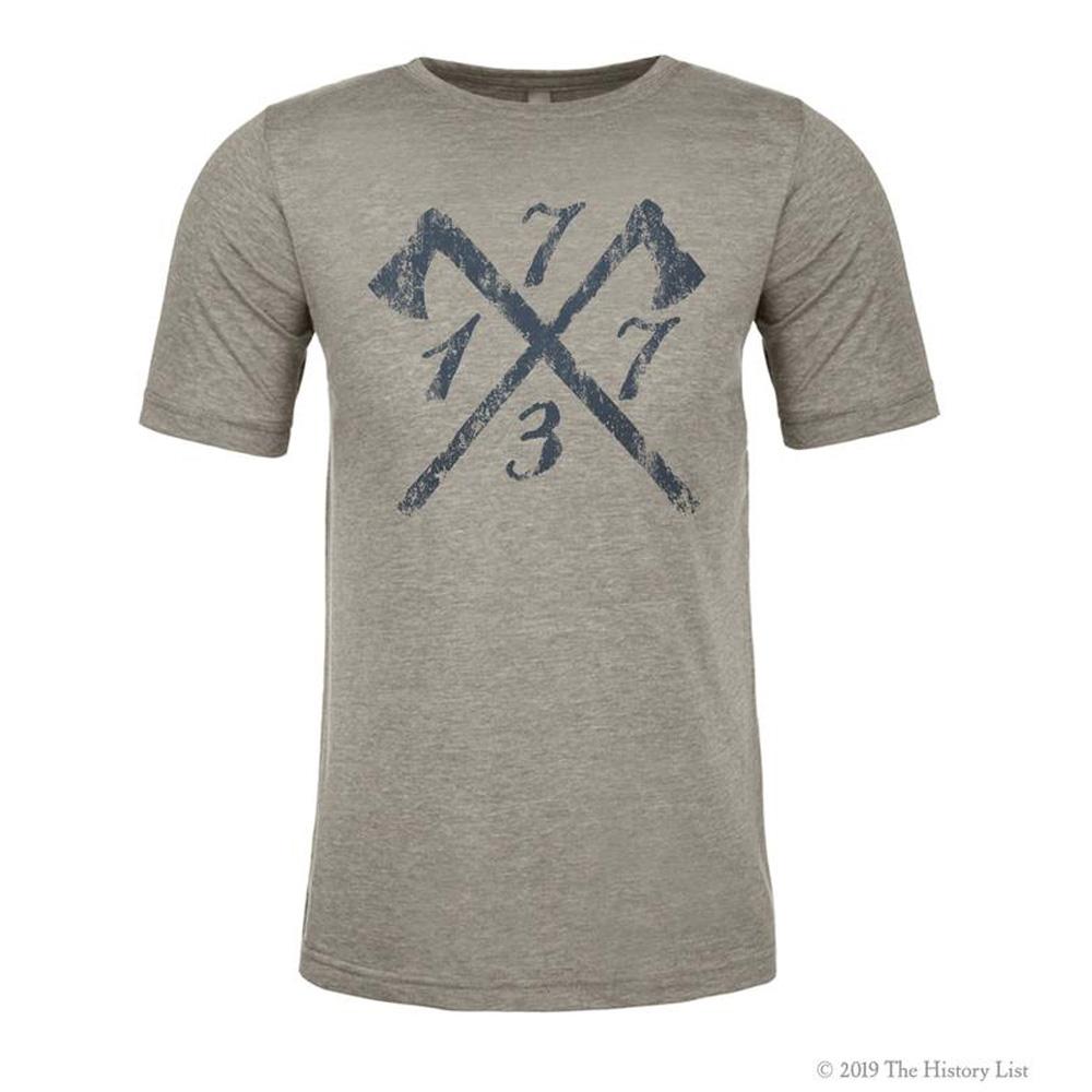Featuring a simple design of the year 1773, this shirt discretely marks the events of the Boston Tea Party on December 16, 1773, when American colonists boarded three ships in Boston Harbor and dumped 342 chests of tea into the sea.