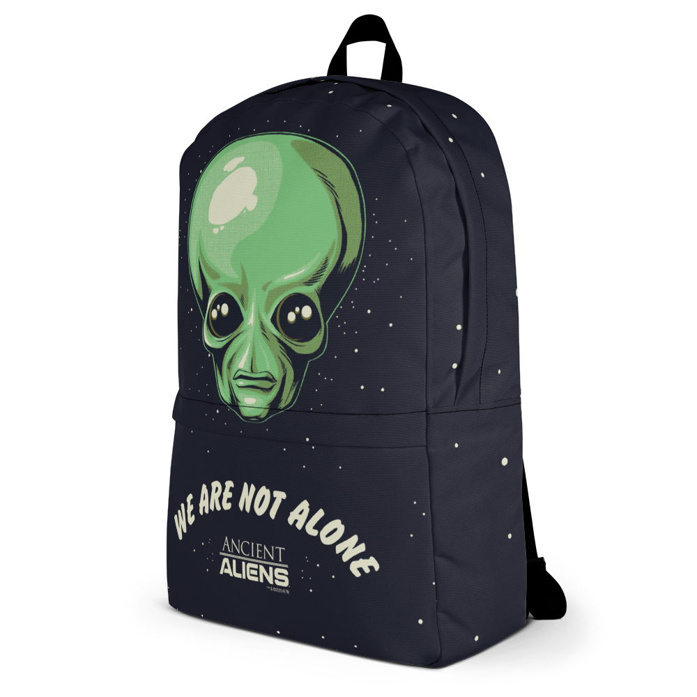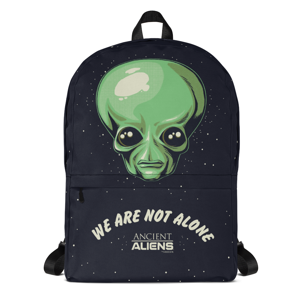This spacious Ancient Aliens We are Not Alone Backpack is a must-have accessory for Ancient Aliens fans. Whether you’re on your way to an Ancient Aliens marathon or researching extraterrestrial evidence on Earth, you’ll love throwing this backpack over your shoulders.