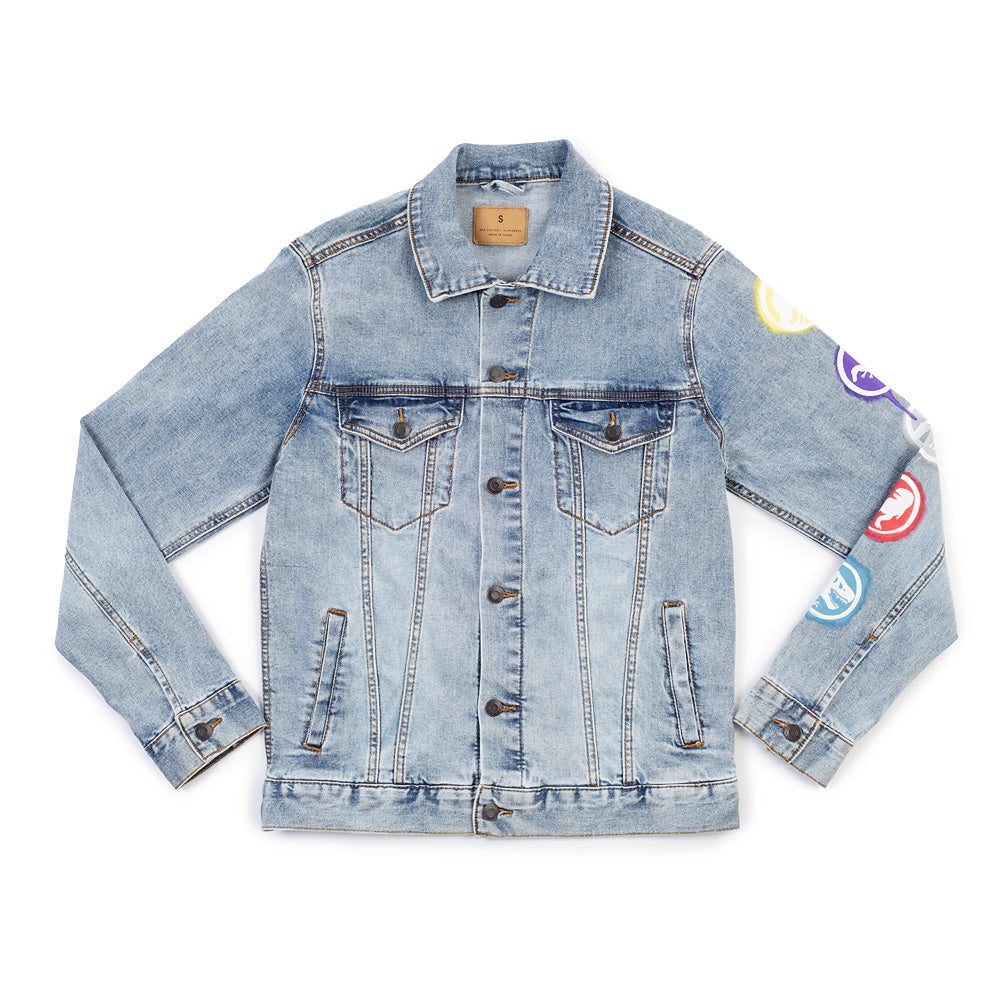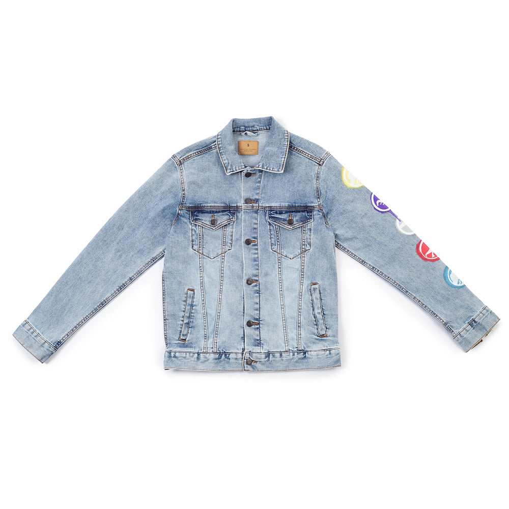 - Blue denim, hand-painted design Due to each piece being hand painted, each jacket might have slight differences.