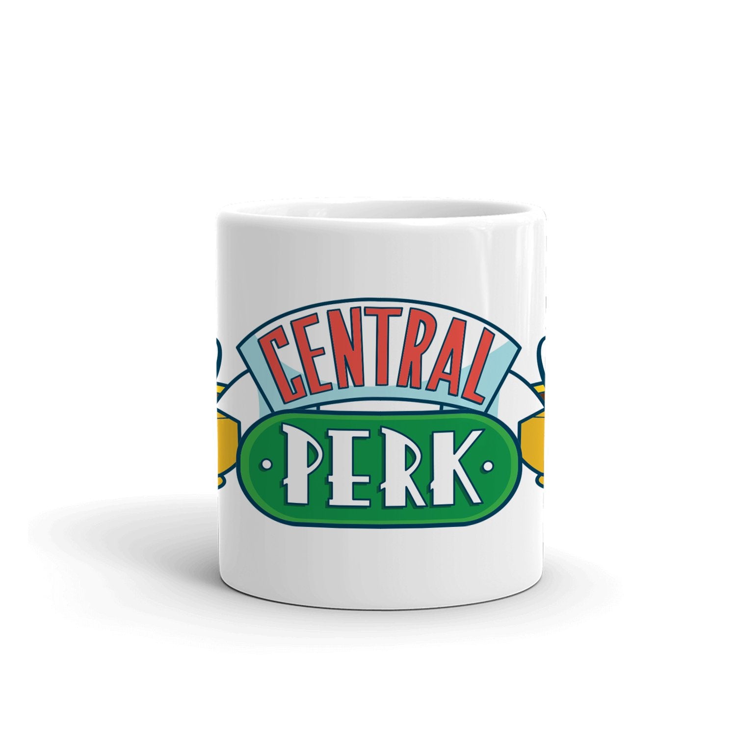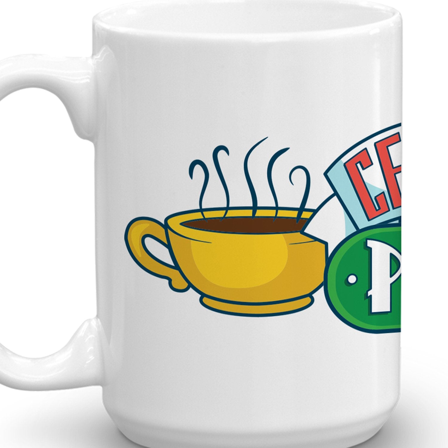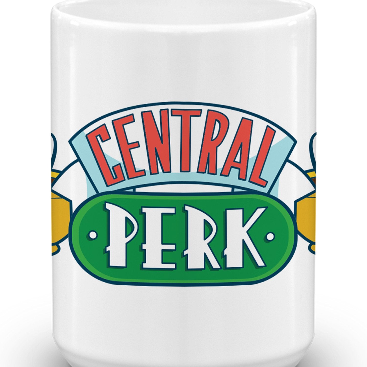 Featuring the coffee house's logo wrapped around the mug, this Friends Central Perk Wrap Around Mug lets you enjoy your favorite coffee beverages in style. Whether you are at your apartment with friends or listening to the musical musings of Phoebe Buffay at the local coffee house, this Central Perk mug is the perfect addition to your drinkware collection.