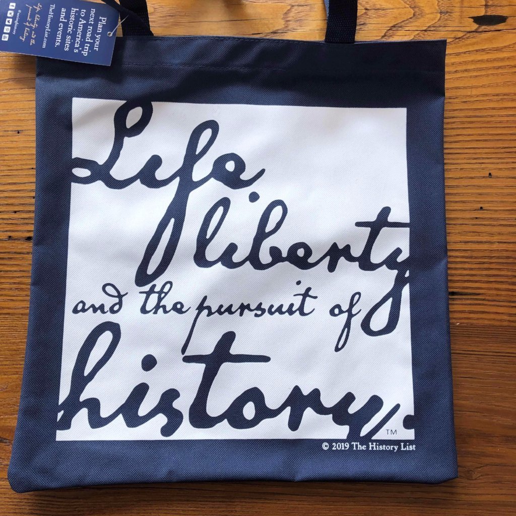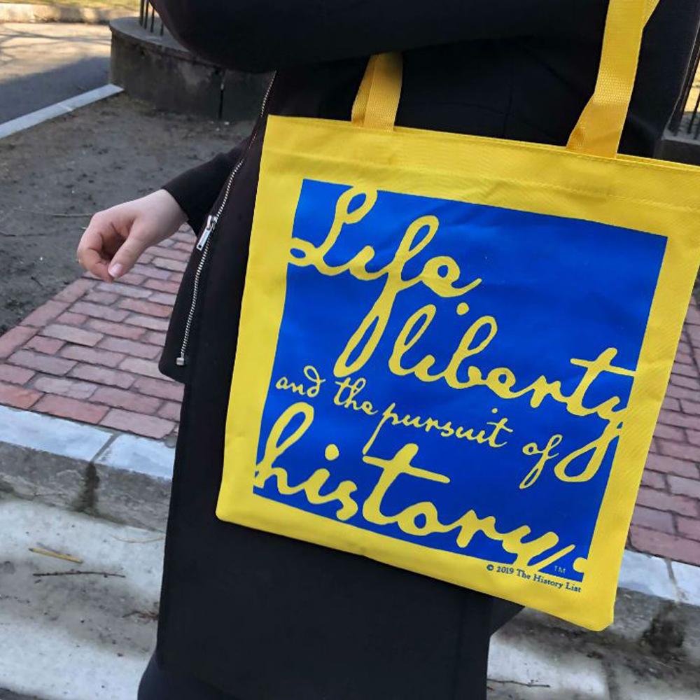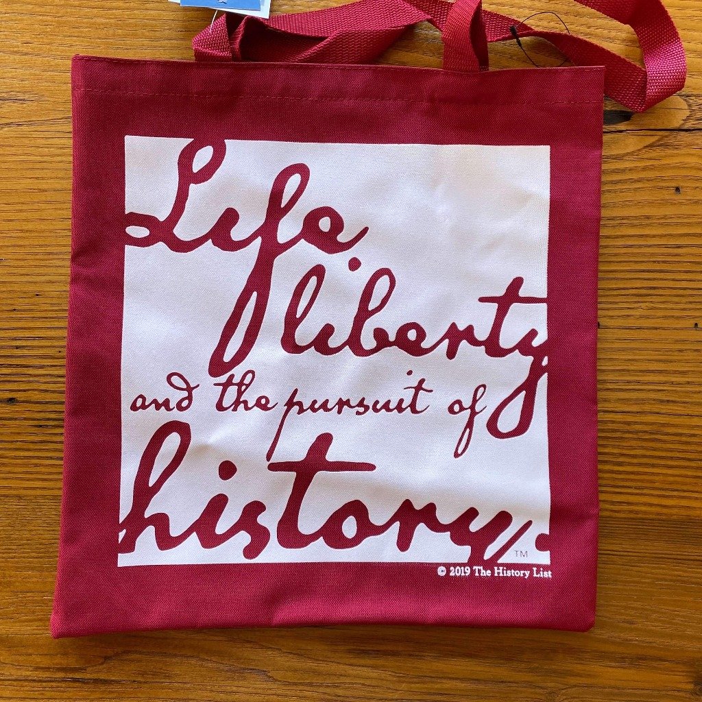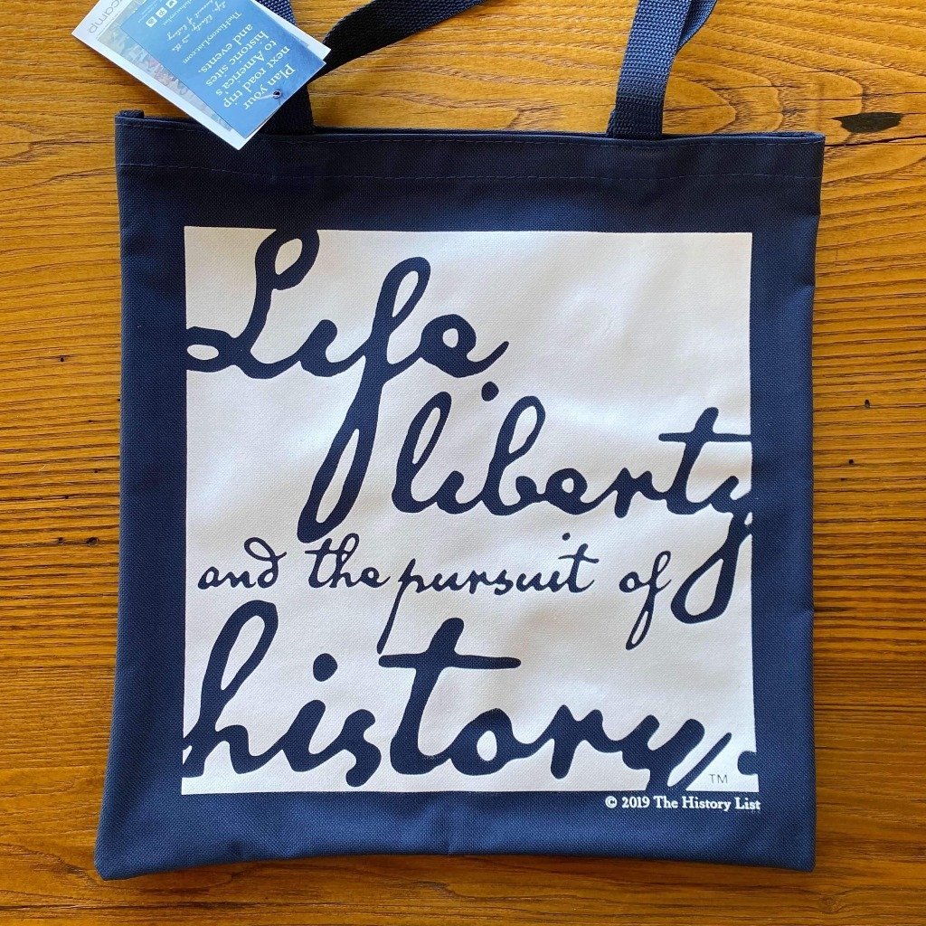 This Life, Liberty, and the Pursuit of History Tote Bag is the perfect accessory for history lovers. Spacious enough for books or groceries, this colorful 600-denier polyester tote bag lets you celebrate your right to life, liberty, and the pursuit of history with each use. Featuring a water-resistant interior and 50 percent recycled material, this tote is a must-have accessory for history buffs.