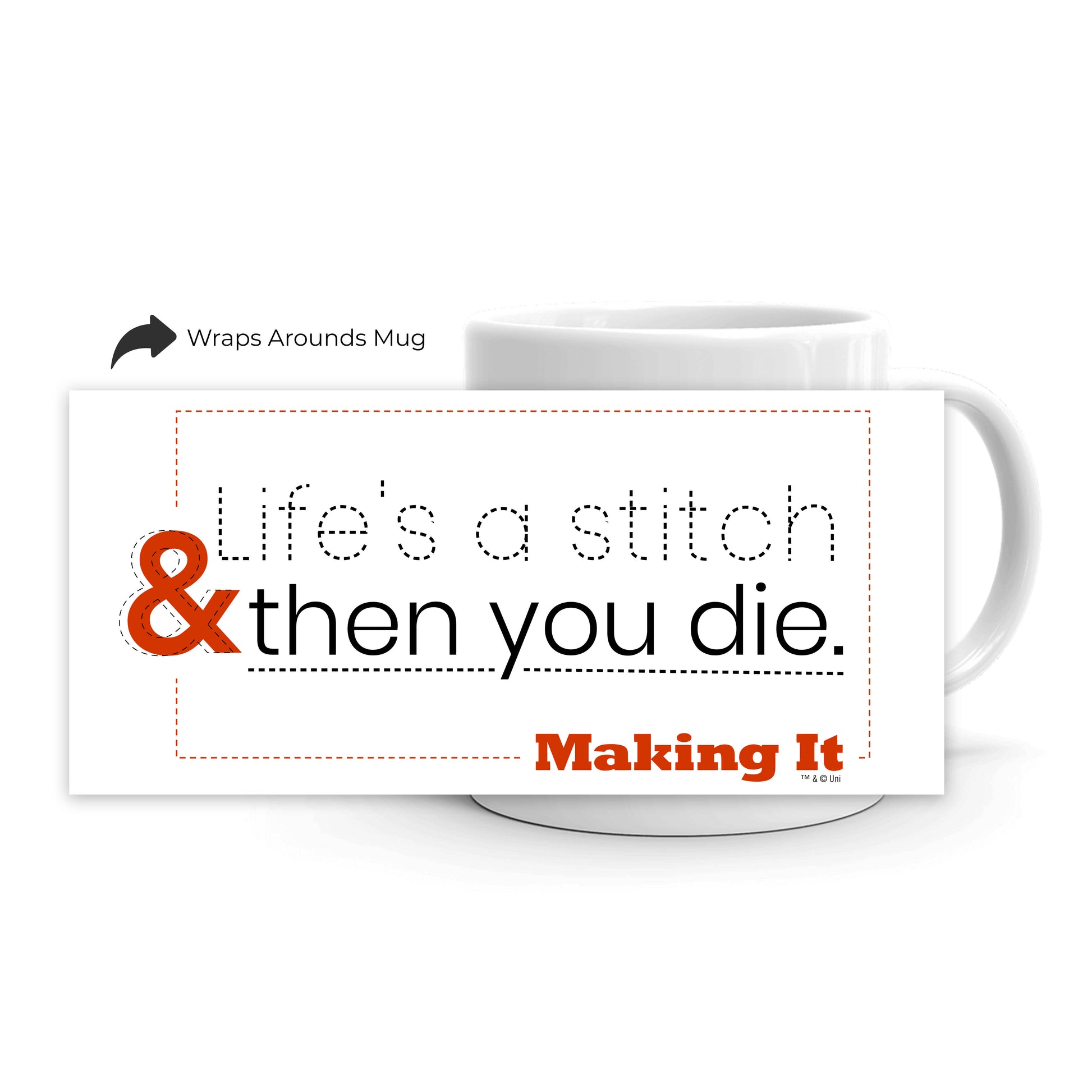 Amy Poehler and Nick Offerman host NBC’s new hit Making It. Here they help makers unleash their potential for the title of Master Maker. Enjoy your favorite beverage out of this Making It Life’s a Stitch Mug. Available in 11 oz. and 15 oz.