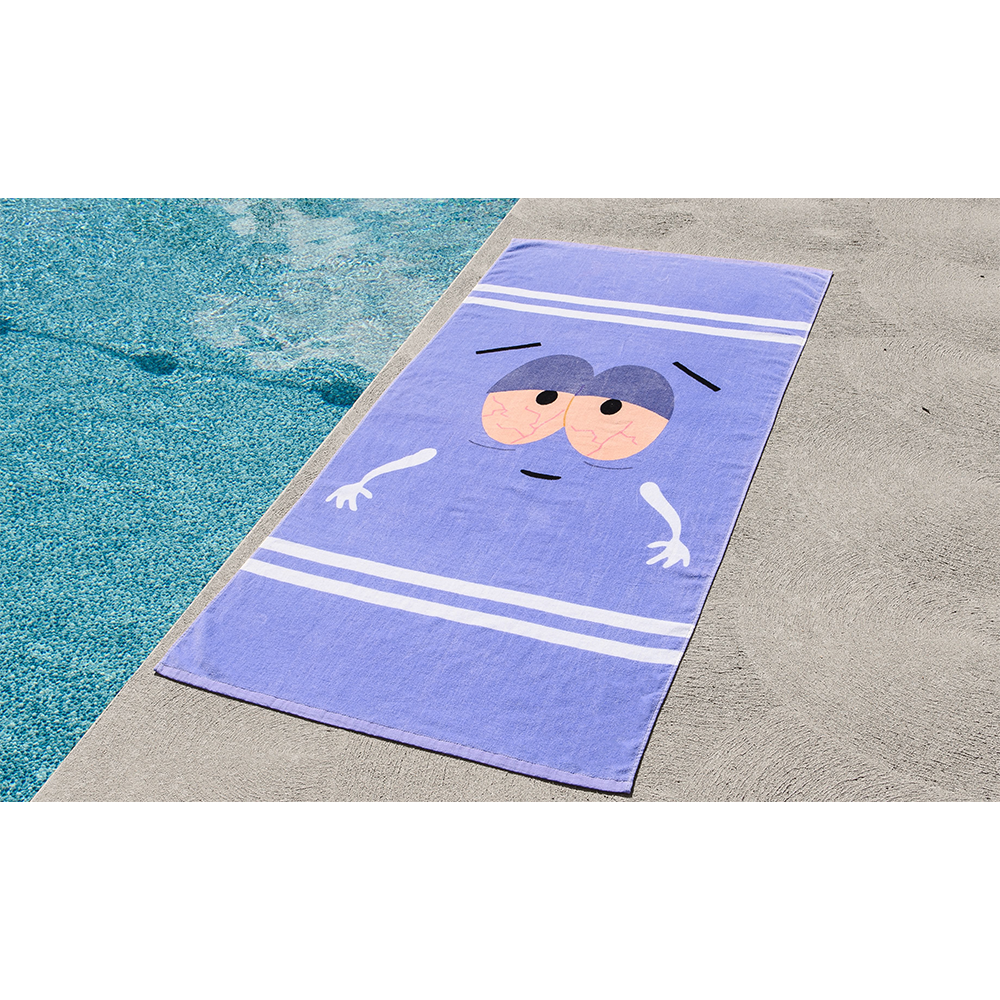 Going to the pool or the beach? Don’t forget to bring a towel! Whether you are drying off after catching some waves, soaking up the summer sunshine, or using it as your new favorite bath towel, this South Park Towelie Beach Towel lets you take Towelie with you everywhere you go.
