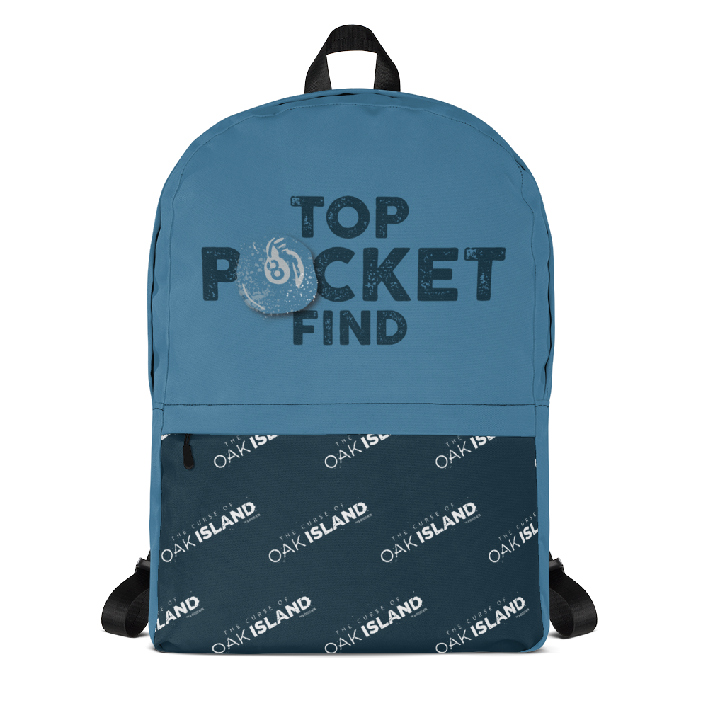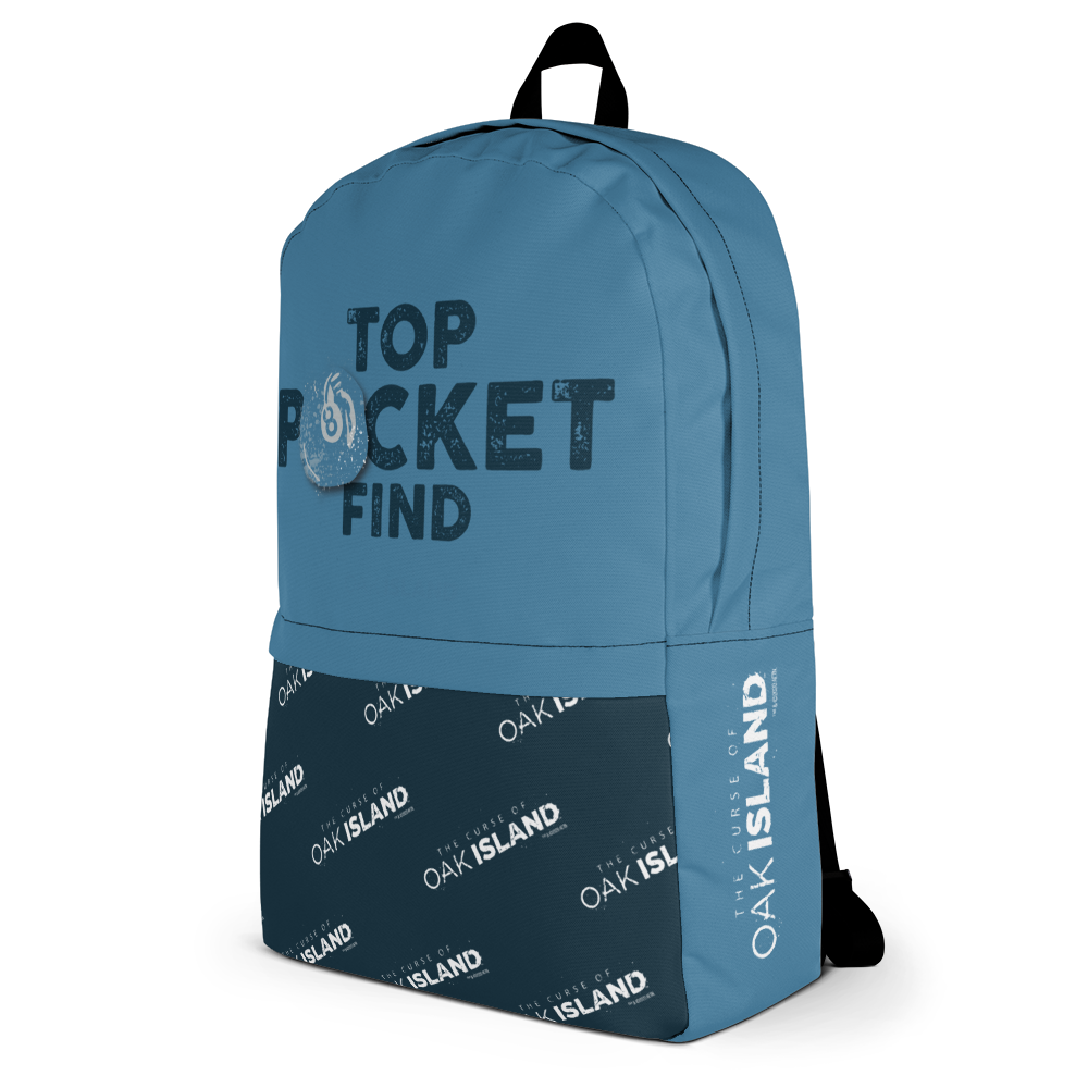 This durable The Curse of Oak Island Top Pocket Find Backpack is a great find with both a top and bottom pocket. Featuring the classic quote across the top of the backpack and a pattern of logos across the bottom, this backpack is a must-have accessory for any commuting fan of The Curse of Oak Island.