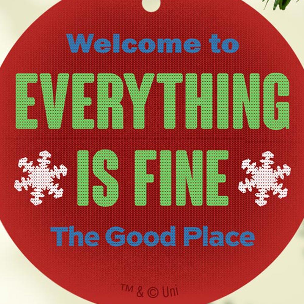 Welcome to the holidays! The cookies are iced, the cocoa is hot, and everything is fine. Hang this festive The Good Place Everything Is Fine Double-Sided Ornament on your tree this holiday season to show your guests that it's the best time of the year, everything is fine, and that you are the #1 fan of The Good Place. This ornament also makes a thoughtful stocking stuffer or Secret Santa gift!