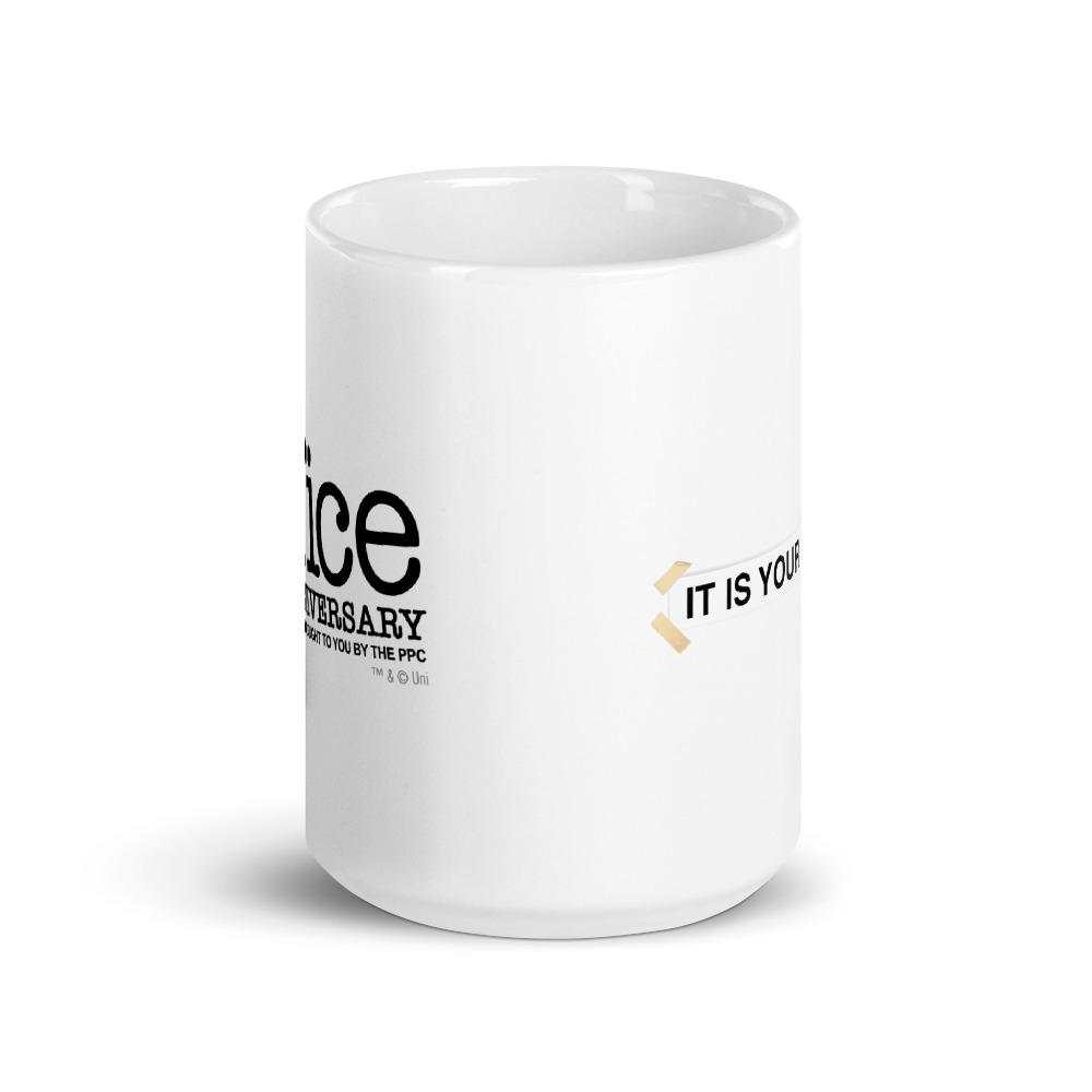 If you only sing the high harmony of "Happy Birthday" and make inappropriate birthday toasts, then you will love celebrating the 15th anniversary of The Office with this official The Office 15th Anniversary White Mug. Featuring the anniversary logo on one side and the hilarious "It Is Your Birthday" sign created by Dwight Schrute on the other, this mug is the perfect way to celebrate 15 years of The Office.