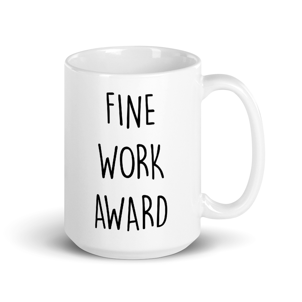 Show off your Dundie Award at home or at work with this Fine Work Dundie Award White Mug from The Office. Perfect for fans of Stanley, The Office, and doing fine work, this white mug will make your morning coffee routine that much better.