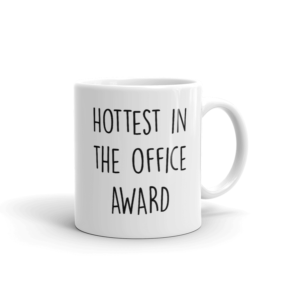 If you are the hottest in your office, then you will love sipping your favorite beverage from this Hottest in the Office Dundie Award White Mug. Featuring a Dundie Award from The Office on one side and your title on the other, this white mug is the perfect addition to your morning coffee routine.