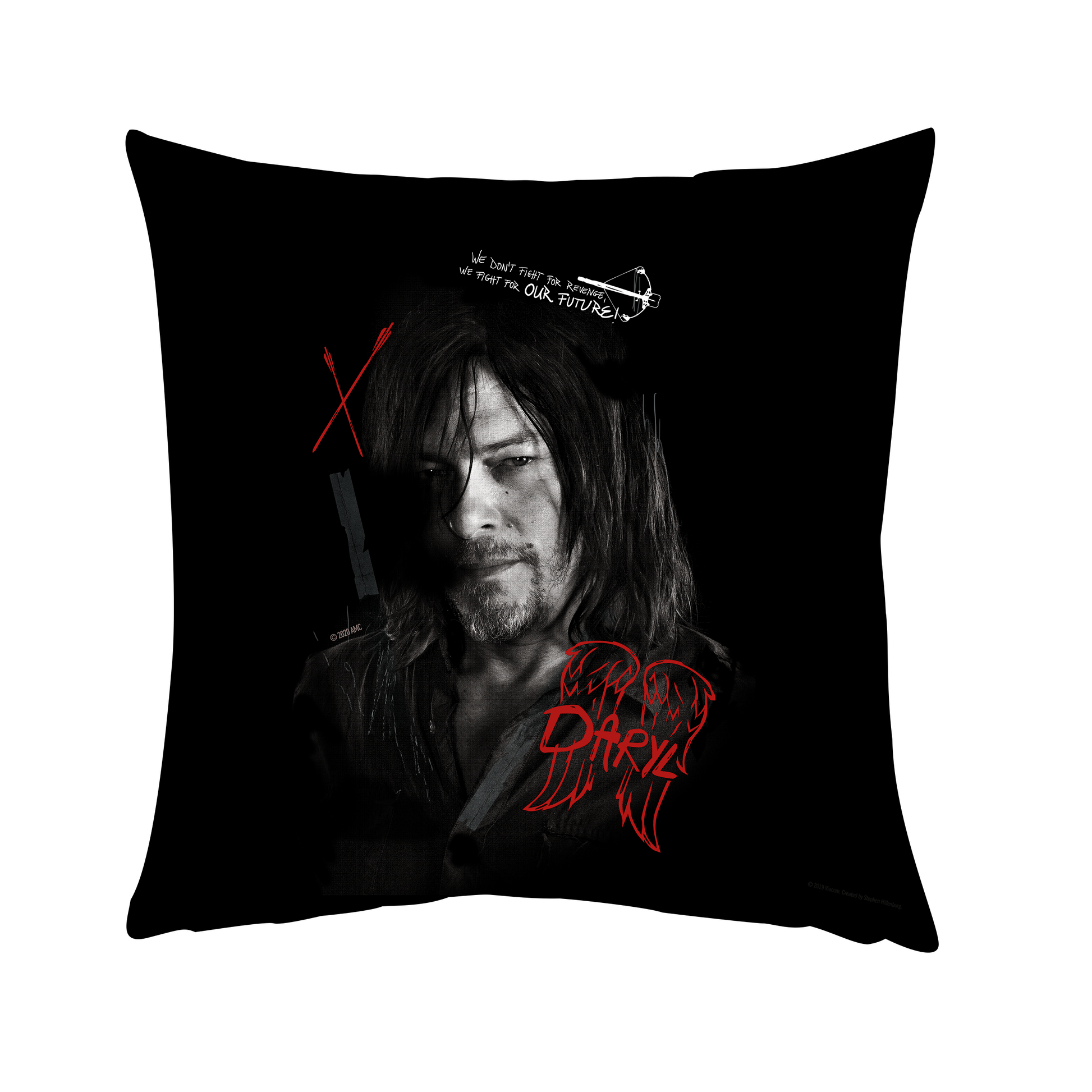 This eye-catching The Walking Dead Daryl Graffiti Throw Pillow gives any comfy couch, chair, or bed a killer upgrade. Featuring Daryl Dixon and his iconic quote from Season 10, this throw pillow makes a great addition to your media room, home theater, bedroom, and more.