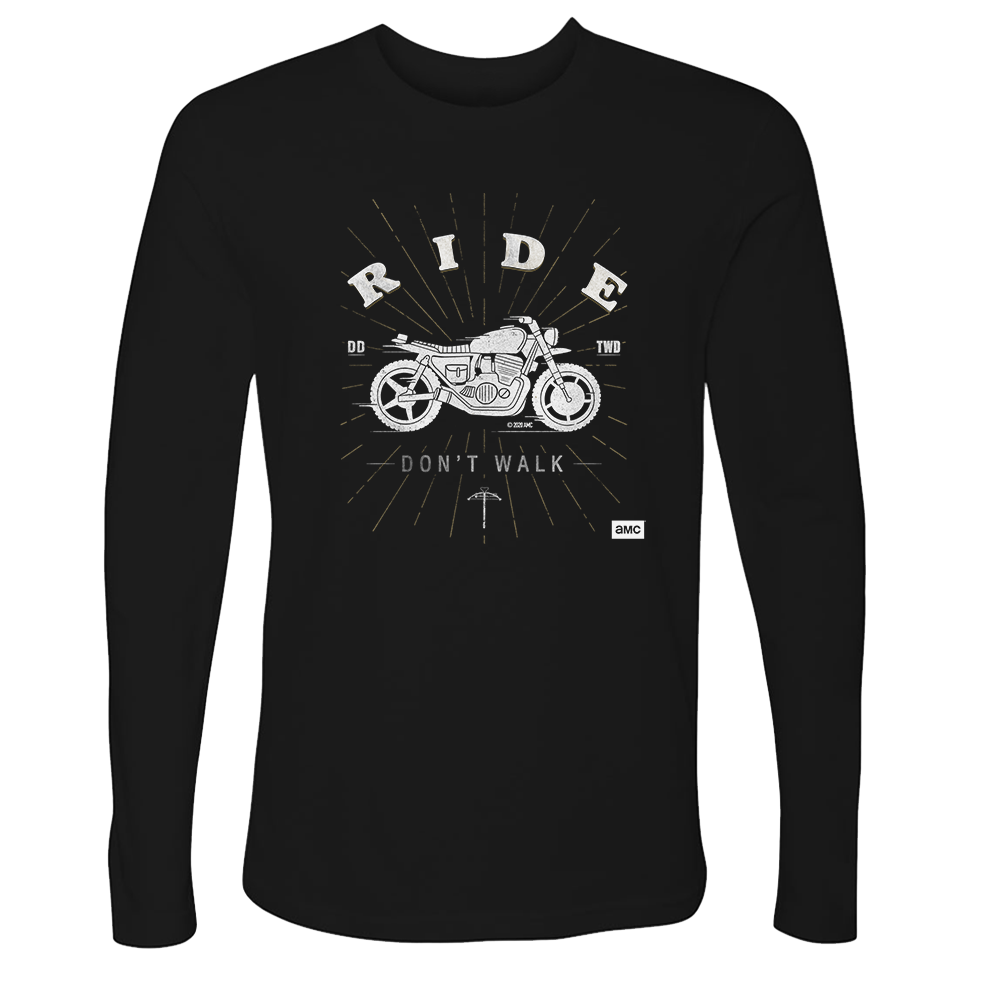 Hop onto your vintage Triumph chopper in style by adding this The Walking Dead Daryl Ride Don't Walk Adult Long Sleeve T-Shirt to your riding gear. Perfect for Daryl Dixon fans, this tee makes a great birthday, holiday, or “just because” gift to anyone who loves The Walking Dead.