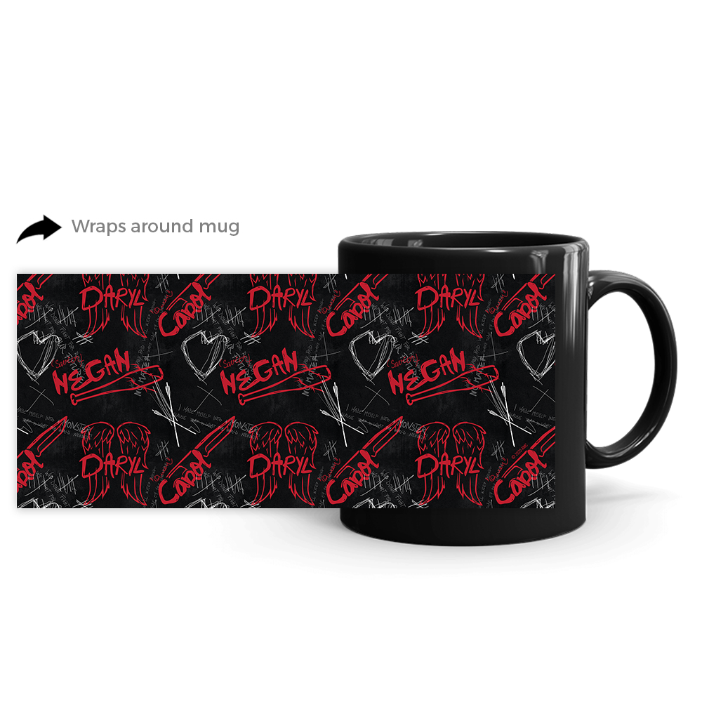 Fans of The Walking Dead will love reaching for this The Walking Dead Edge All-Over Print Black Mug every chance they get. Featuring Carol, Daryl, and Negan along with their iconic symbols or weapons, this black mug was made for the biggest fan of The Walking Dead.
