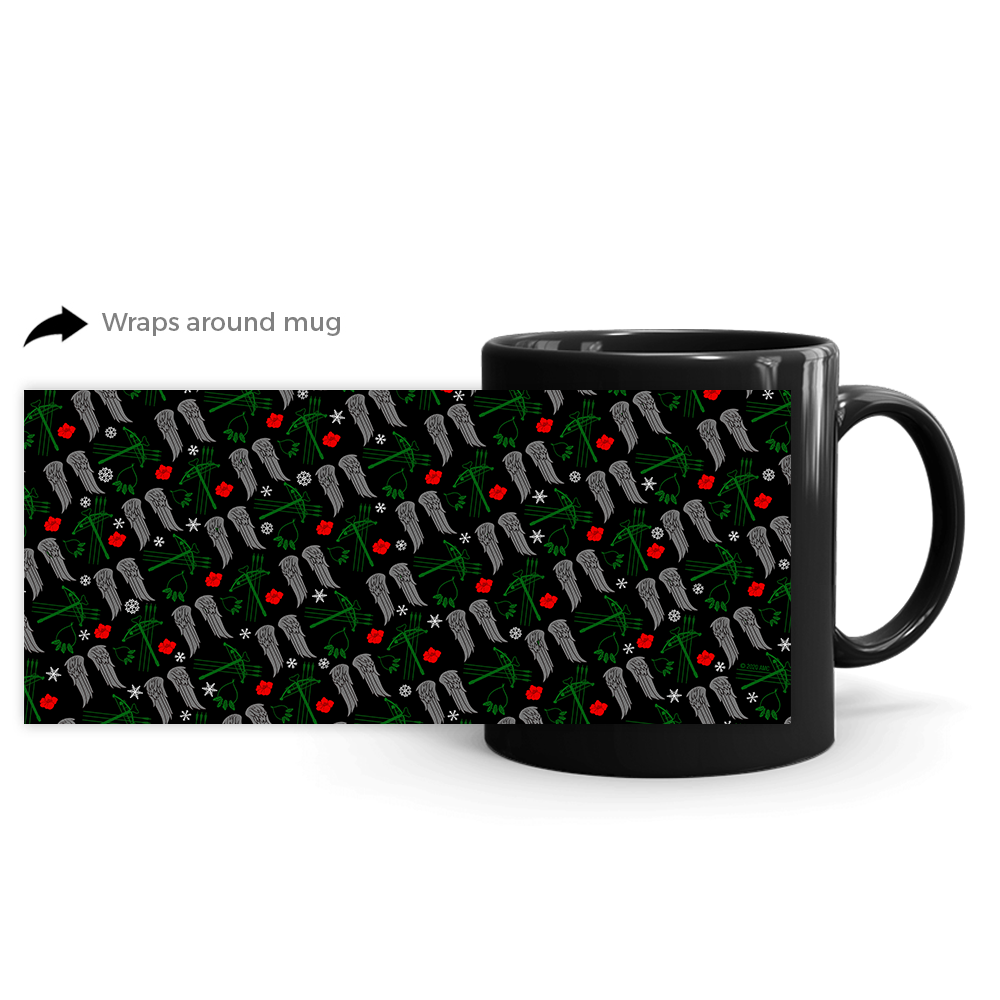 Great for gifting, this The Walking Dead Icons Holiday All-Over Print Black Mug makes a great addition to any fan’s coffee cart, office desk, or kitchen. Featuring a pattern of infamous Daryl Dixon symbols, this black mug is a must-have.