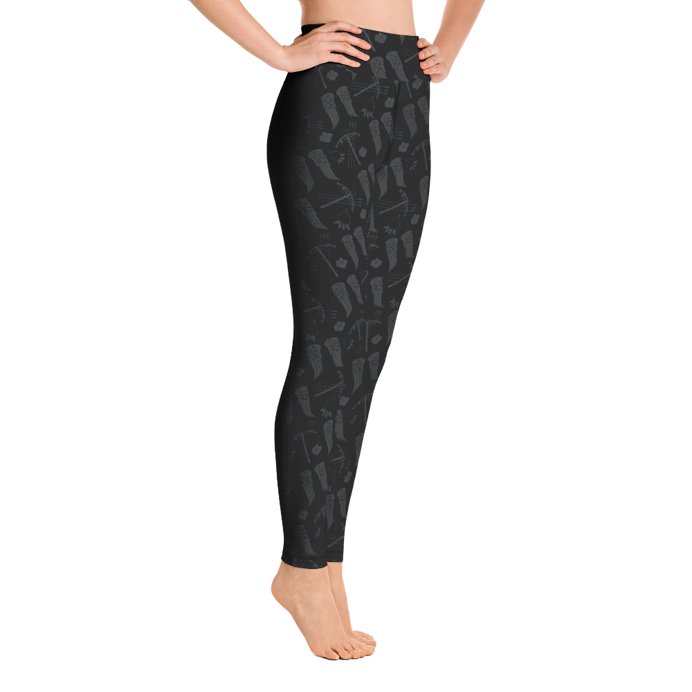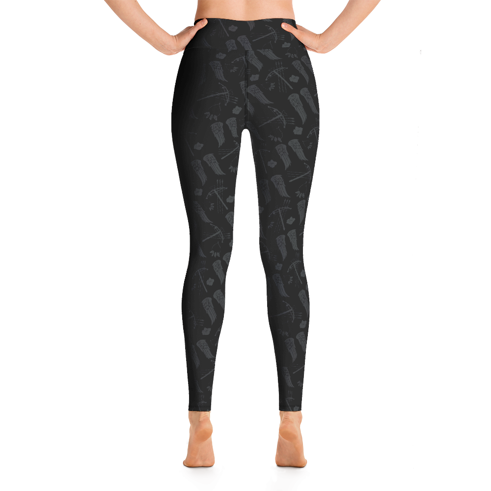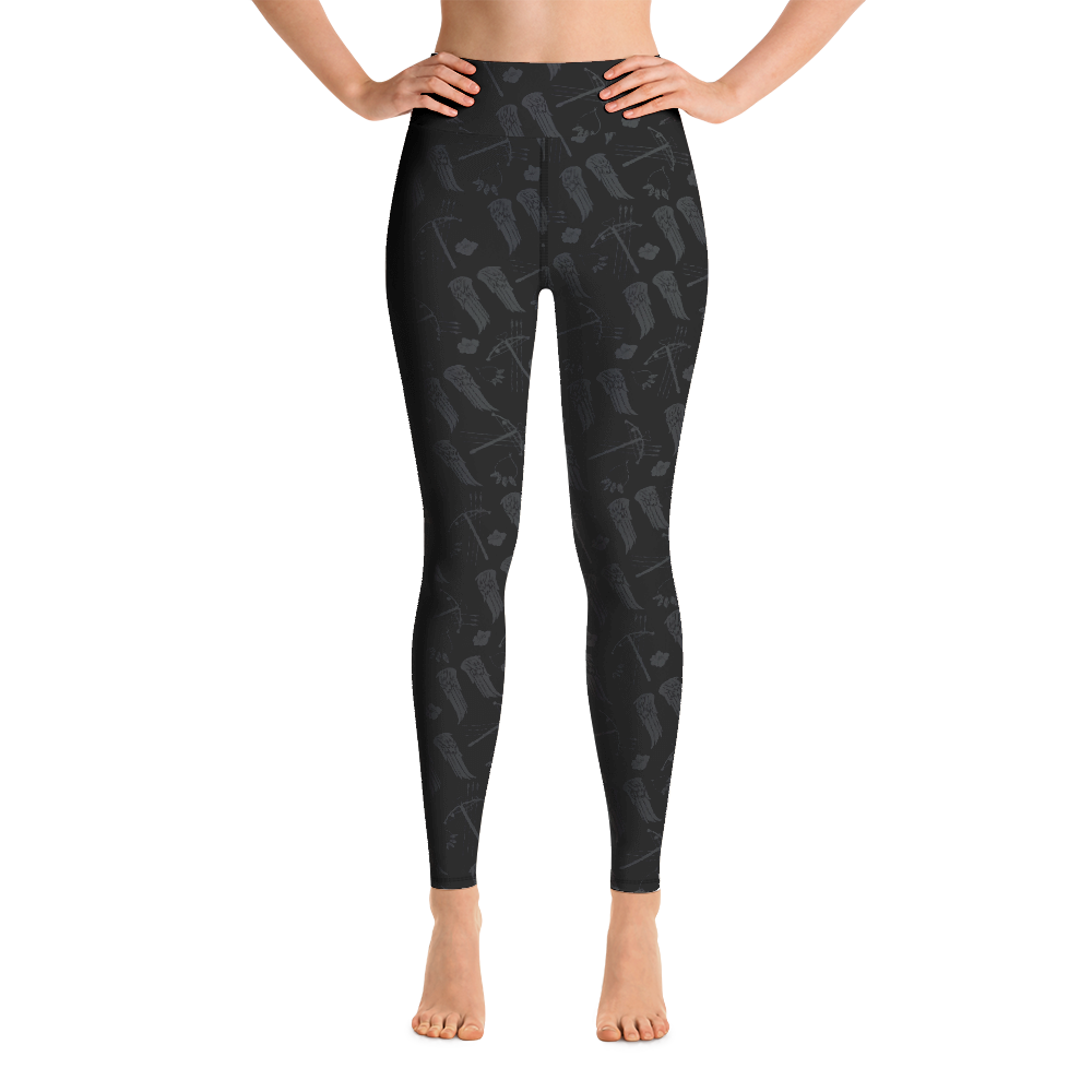 These comfy The Walking Dead Icons Women's All-Over Print Yoga Leggings are perfect for outrunning walkers, practicing new yoga poses, and watching The Walking Dead. Featuring a pattern of Daryl Dixon’s iconic crossbow, angel wings, and more, these yoga leggings make a statement everywhere they go.