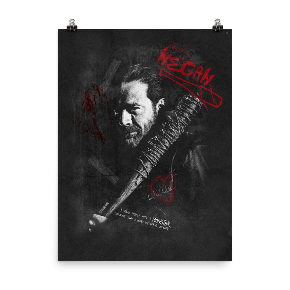 Give the walls in your media room, office, dorm, or bedroom a wicked upgrade by hanging this The Walking Dead Negan Graffiti Premium Satin Poster up for all to see. Featuring Negan and Lucille, this satin poster is the perfect addition to your space.