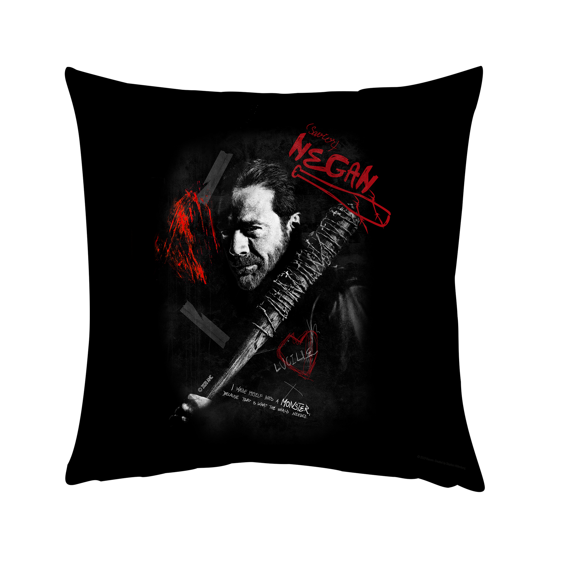 Give your The Walking Dead viewing experience the upgrade it deserves by placing this Negan Graffiti Throw Pillow on your favorite couch or chair. Perfect for clutching when the drama heats up, this throw pillow will make your TWD marathons the best yet.