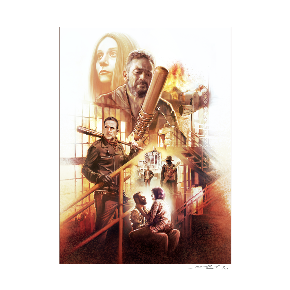 TWDU SHOP AND BRIAN ROOD ART ARE PROUD TO PRESENT NEGAN & LUCILLE "HERE'S NEGAN" FINE ART PRINT BY BRIAN ROOD, AN OFFICIALLY LICENSED PRINT FROM AMC’S THE WALKING DEAD UNIVERSE.