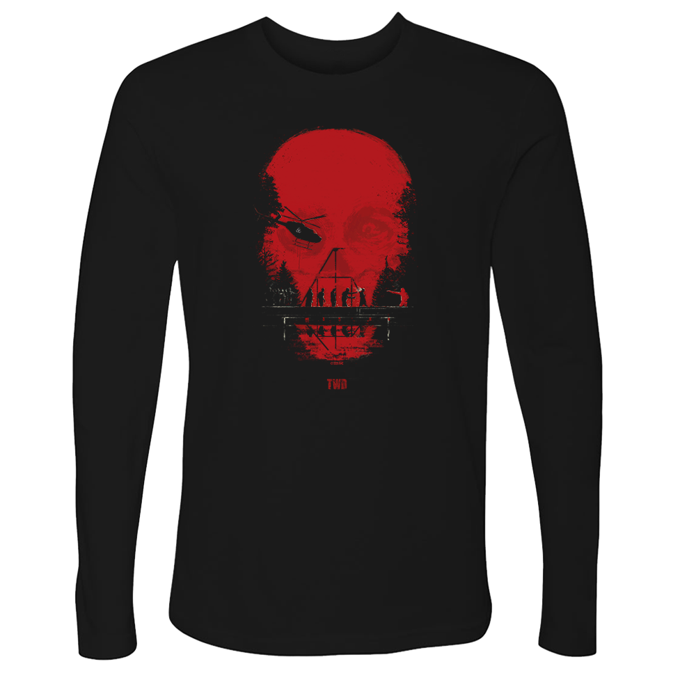 Erie, sinister, and intriguing, this The Walking Dead Skull Adult Long Sleeve T-Shirt was made for the biggest fans of the series. With the red skull on the front that houses iconic silhouettes, this tee will give any wardrobe an upgrade.