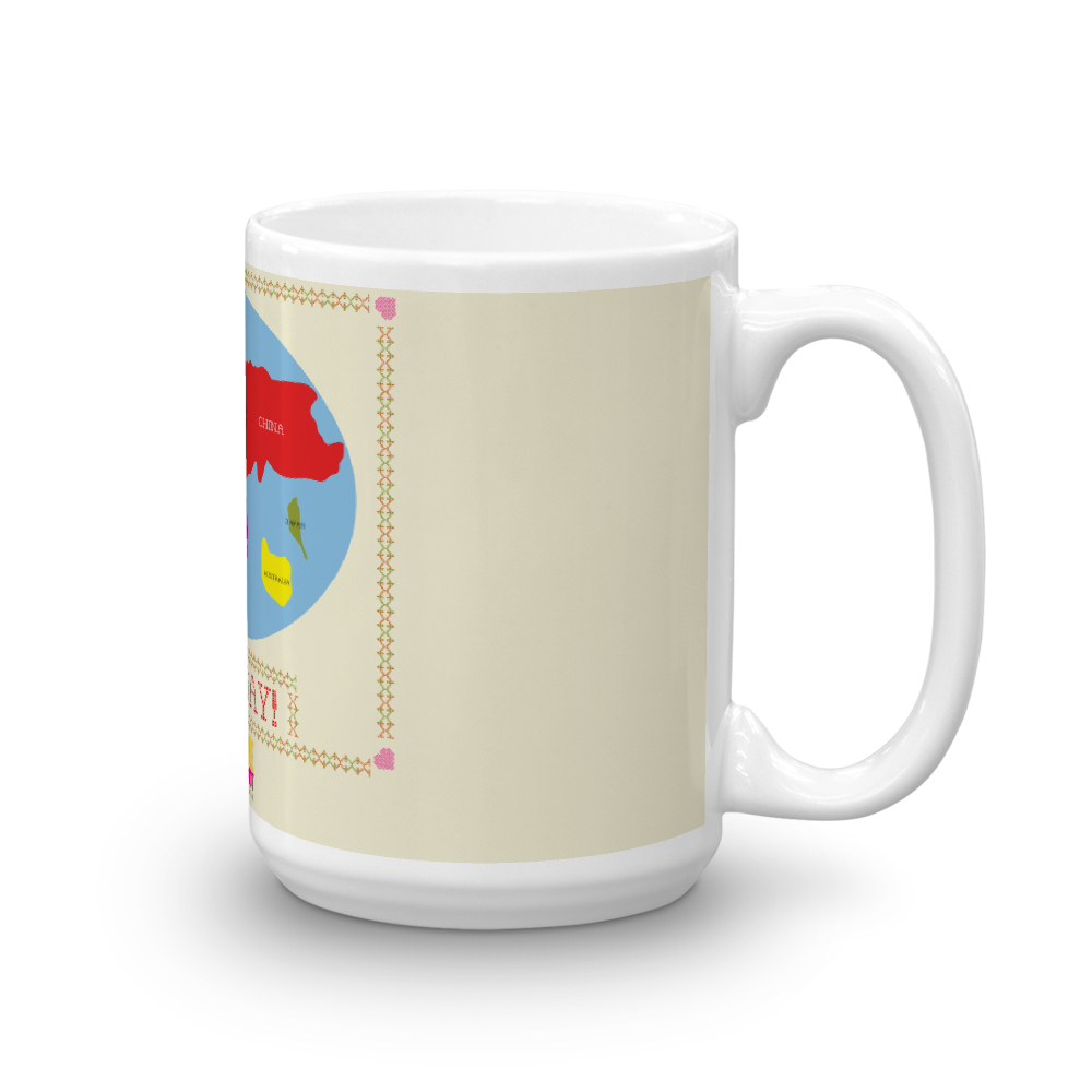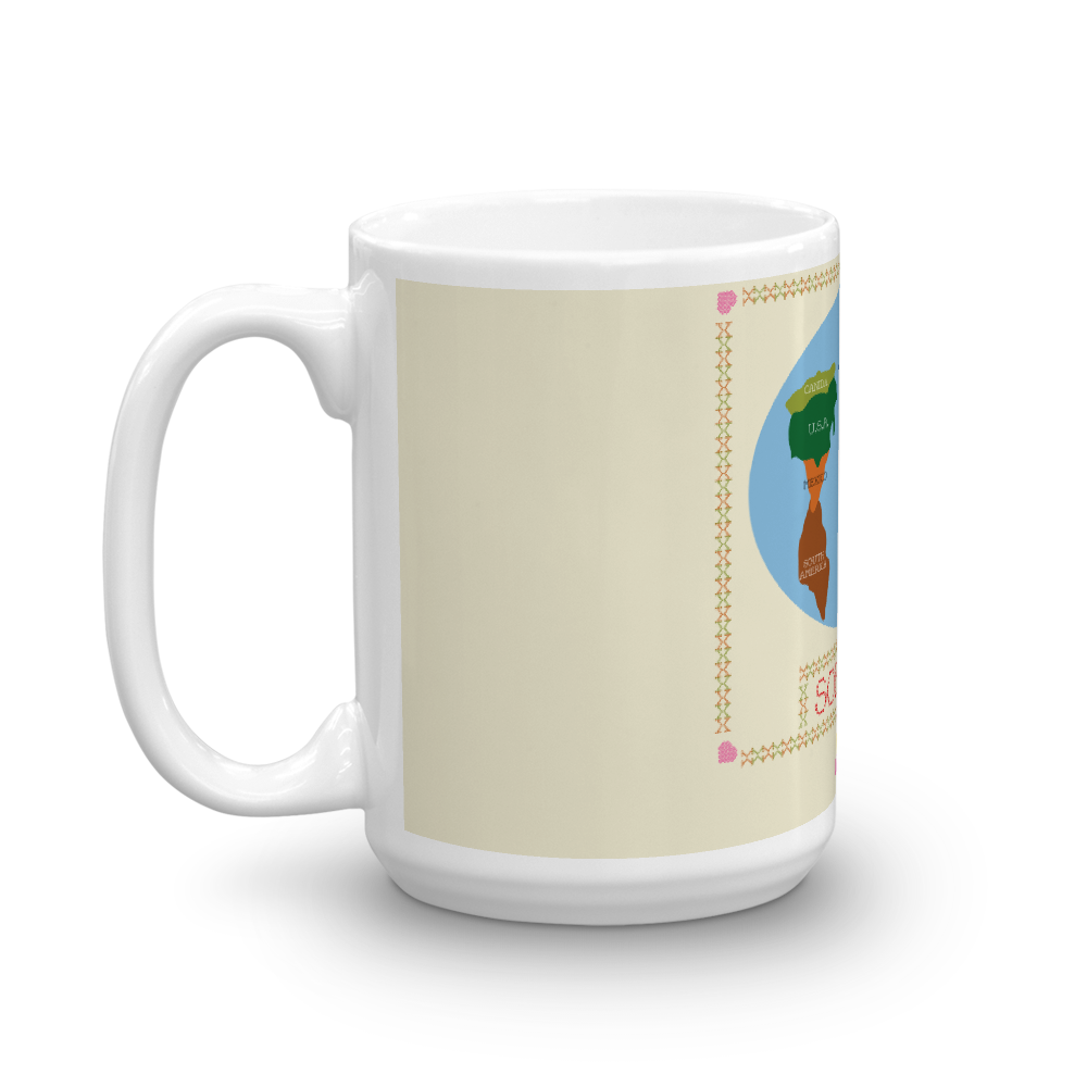 This cross stitch that Kimmy received from Cindy as a secret Santa gift shows the vision of the world that The Indiana Mole Women can't wait to explore. The Someday cross stitch featured on this mug along with a large easy-grip handle will quickly make it a favorite.