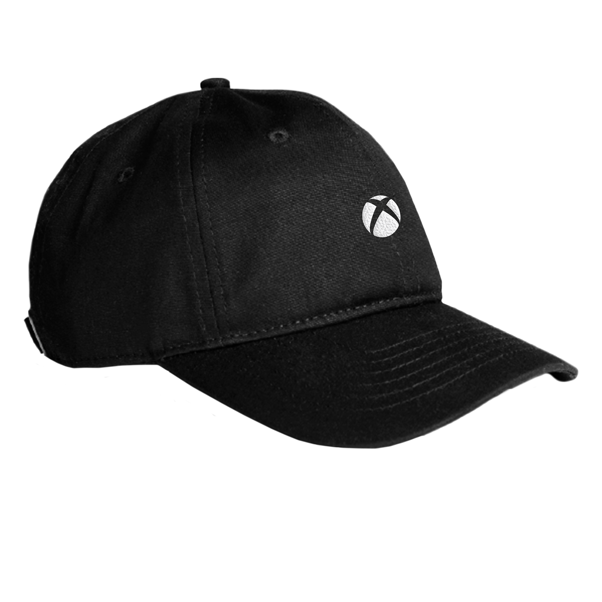A classic strap-back hat with Xbox sphere embroidery and customer liner tape.